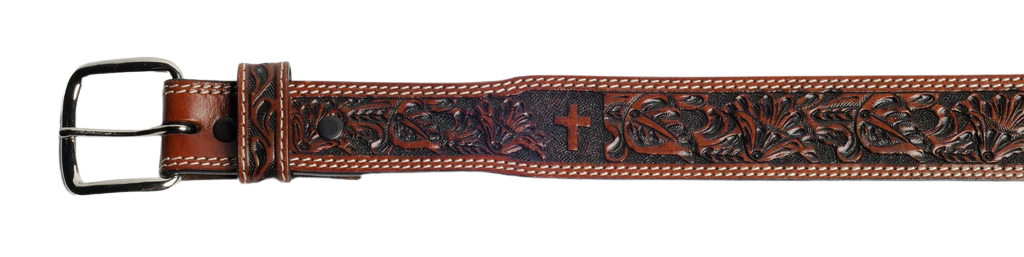 Dress your young cowboy in style with the Cowboy Chrome Kid's Belt featuring beautiful floral and cross tooling. Crafted for durability and comfort, this belt adds a touch of Western charm to any outfit. Its intricate design not only enhances appearance but also inspires confidence and individuality in your child. Perfect for everyday wear or special occasions, this belt combines function with classic Western flair.