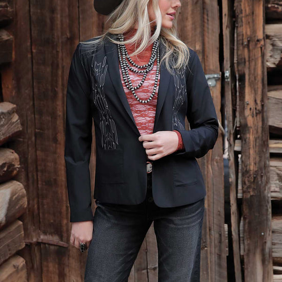 Cruel Denim Women's Embroidered Black Blazer