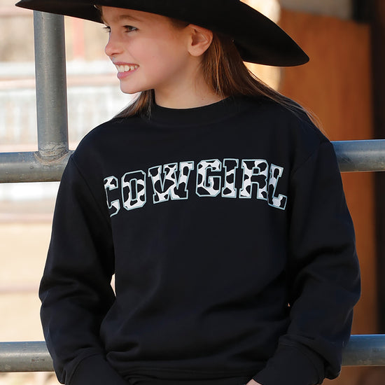 Cruel Girl's Black Cowgirl Screen Print Crew Neck Sweatshirt
