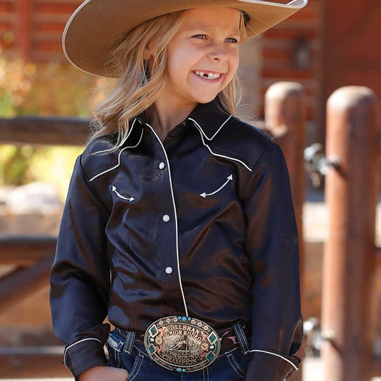 Cruel Girl's Brown Satin Pearl Snap Shirt
