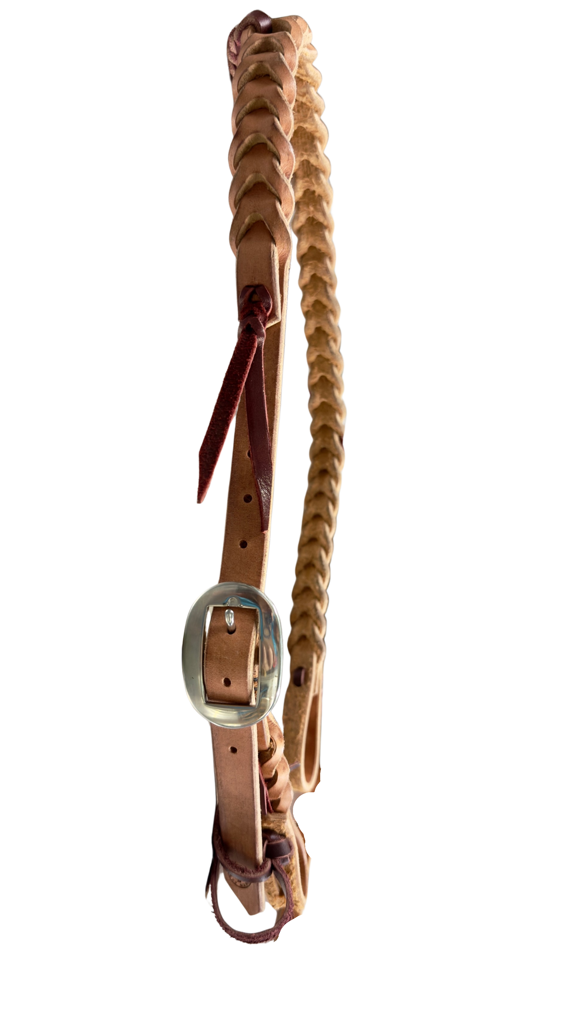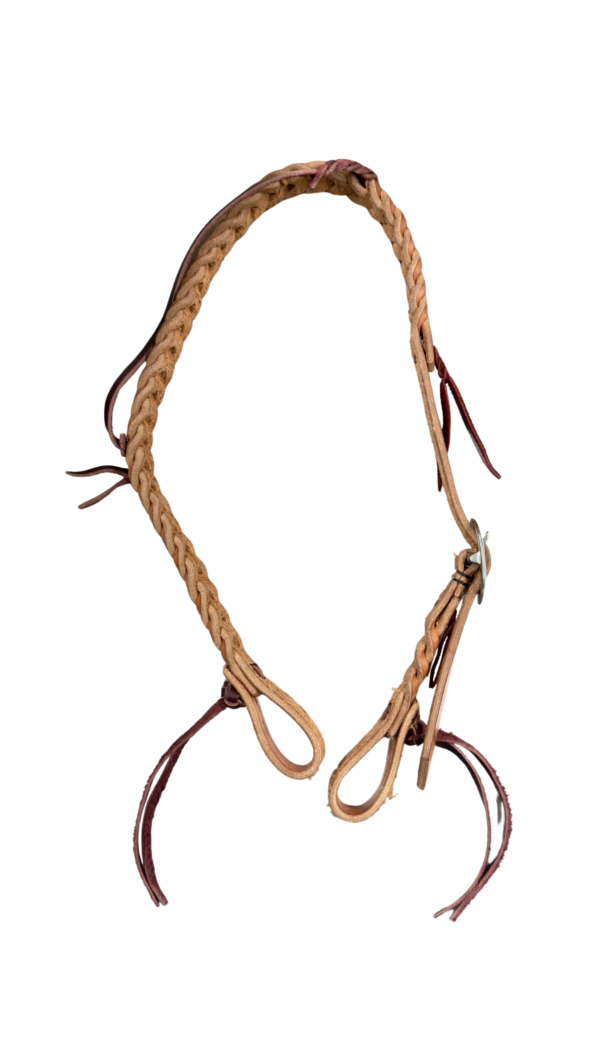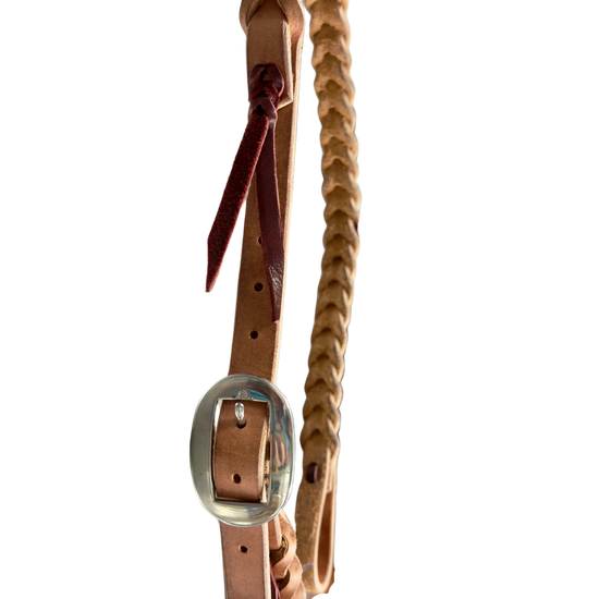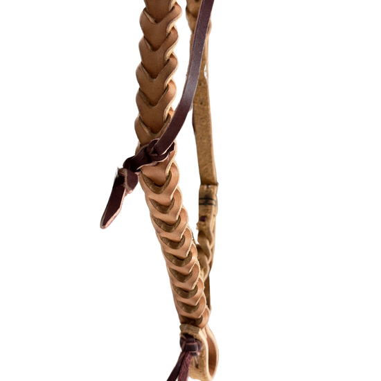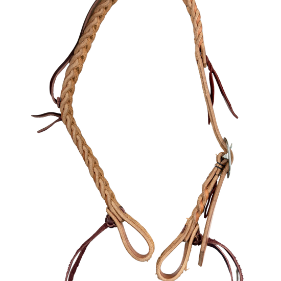 Crafted by local artisans, this Blood Knot Harness Leather Split Ear Headstall combines durability with elegant design. Featuring stainless steel buckles for secure fit and pineapple knot ends for a refined touch, it offers both strength and style. The added ribbon detail enhances its unique look, making it a standout choice for riders seeking quality and distinction in their tack.