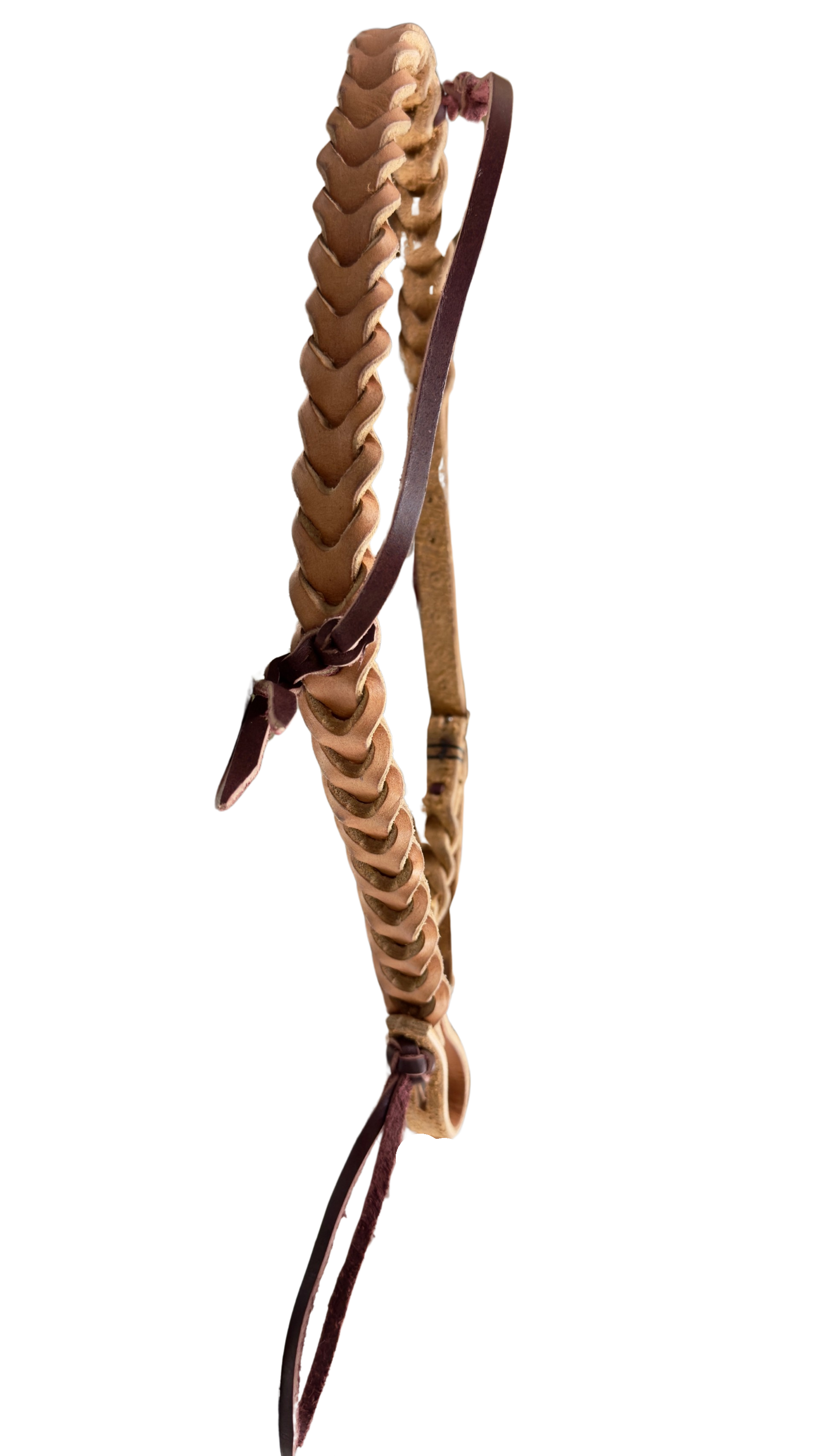 Custom Local Artisan Blood Knot Harness Leather Split Ear Headstall w/Ribbon