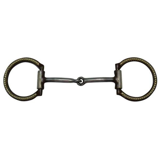 Great-looking bit with brown iron and dot trim cheeks. Fixed dees apply pressure to the horse’s lip on the opposite side from the rein you pull for better flexion. Ride with two hands and direct rein. Stainless mouth with copper inlays to increase salivation for a supple mouth.