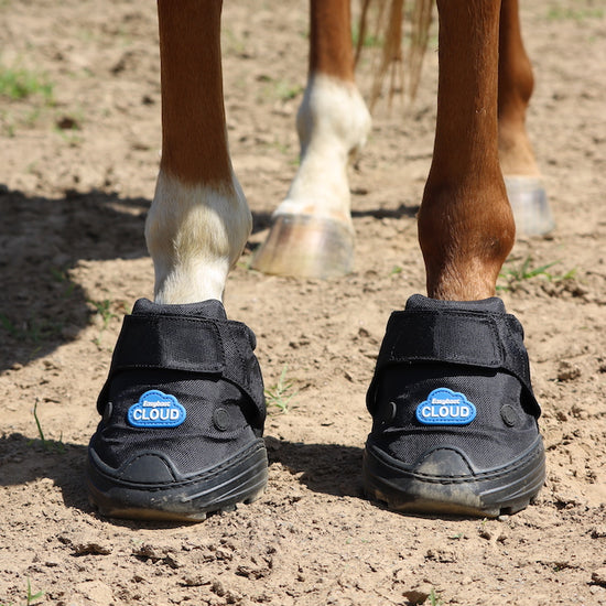 The Easyboot Cloud is a therapy hoof boot designed to give comfort and support to horses with laminitis, thin soles, abscesses, or founder. The Cloud boot aids in recovery after workouts or strenuous exercise, relieves the stresses of shipping, offers stability while trailering, and eases the stress of stalling on hard surfaces. Cloud therapy boots provide instant and ongoing relief for chronic lameness and general lower limb or hoof problems. Not intended for riding or exercise (therapy use only).