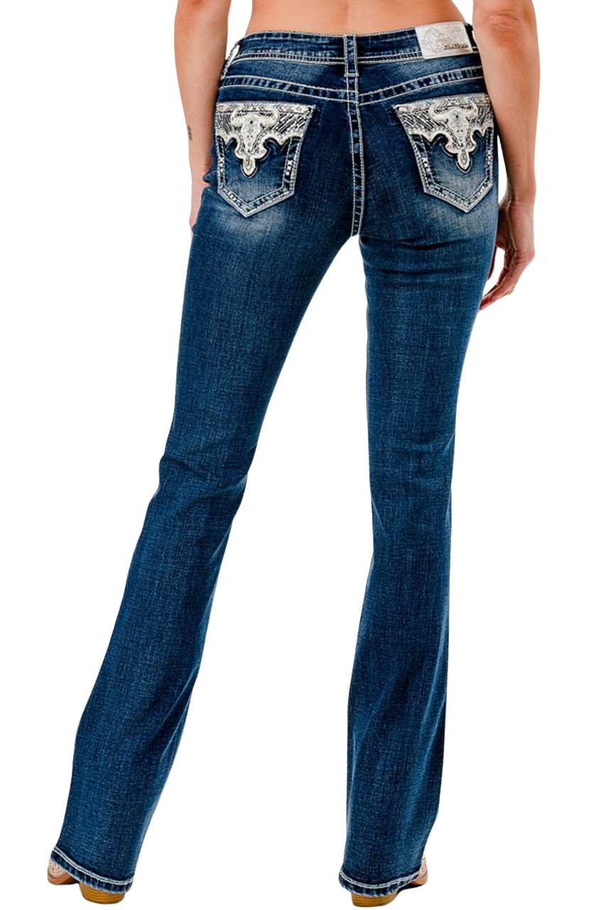Experience effortless style and comfort with the Grace in LA Women's White Longhorn Bootcut Jeans. Designed with a mid-rise fit and bootcut silhouette, these jeans offer a flattering shape that moves with you. Crafted from soft, stretch denim, they provide all-day comfort whether you're at work or out on the town. Perfect for those seeking an easy fit without sacrificing style.