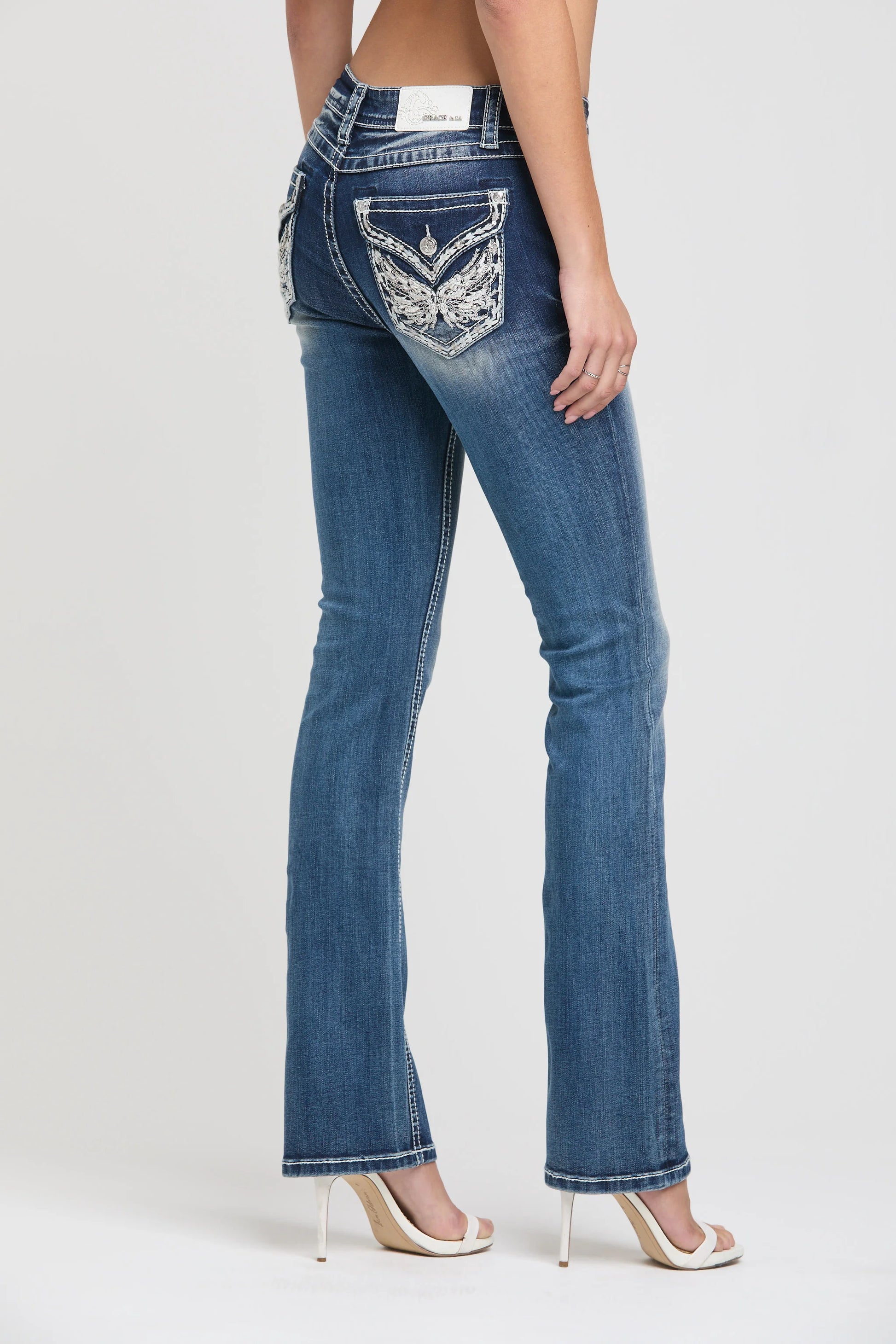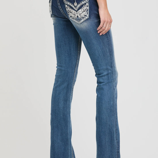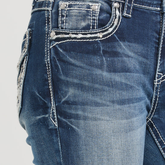 Grace in LA Women's Wing Modify Faux Flap Bootcut Jeans