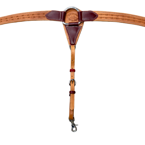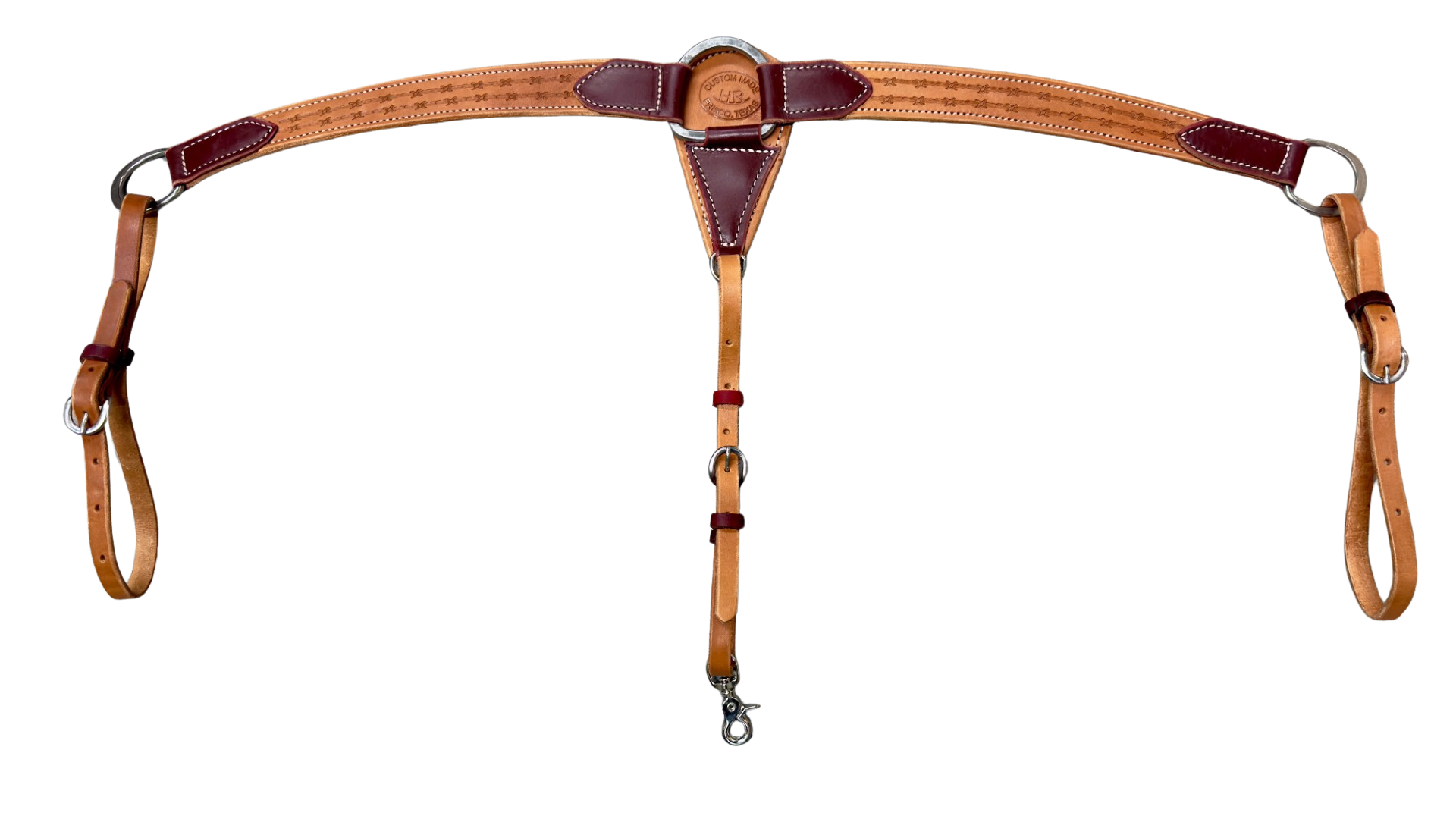 HR 1-1/2" Hand Tooled Barbwire Natural Leather Breast Collar