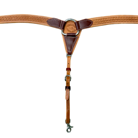 HR 1-1/2" Hand Tooled w/Running W Natural Leather Breast Collar