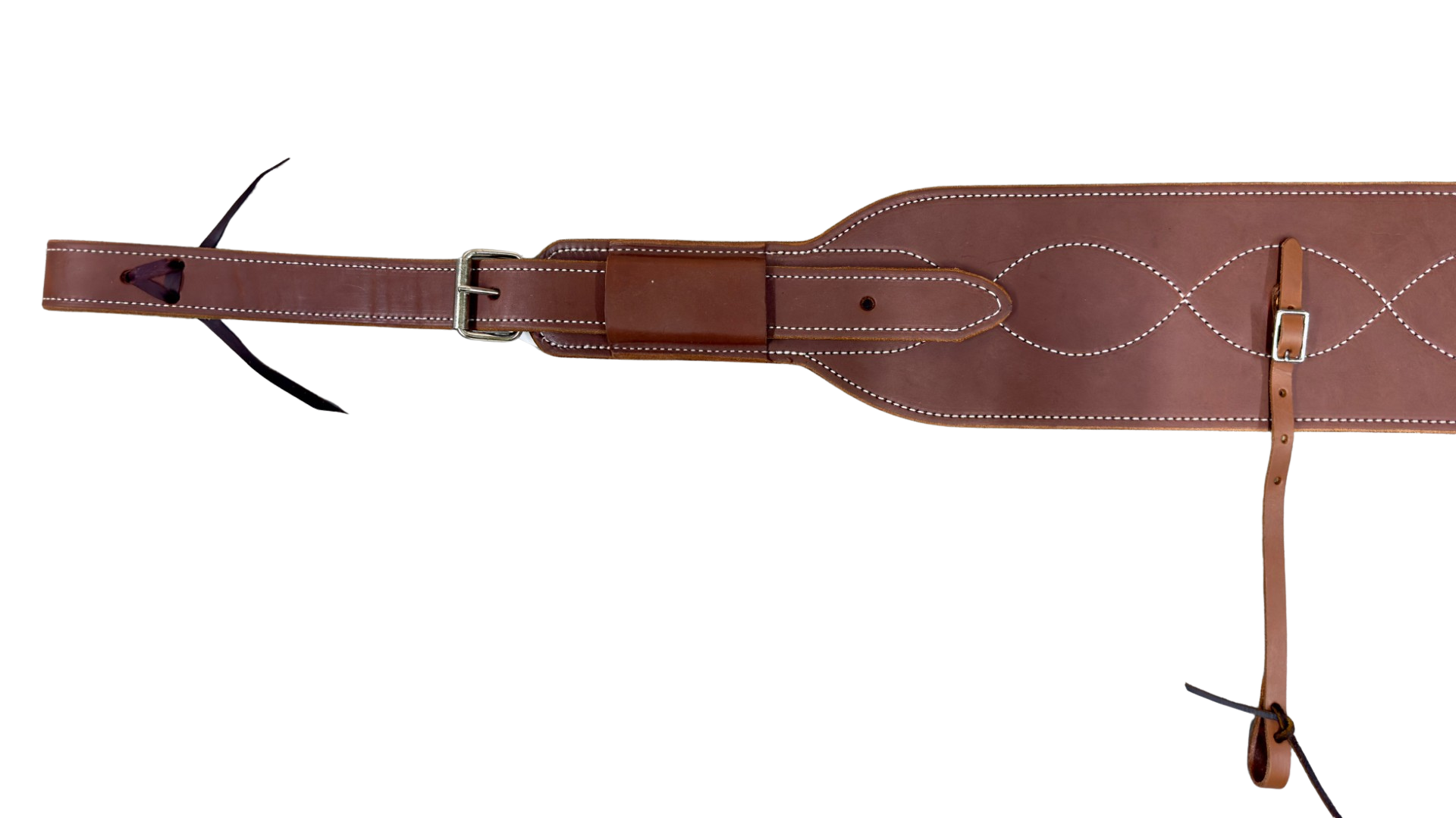 Experience the reliability of authentic ranch equipment with this 6" flank cinch, engineered for riders who won't compromise on quality. The heavy oiled leather offers superior durability and naturally improves with use, developing character while maintaining structural integrity. Integrated billets ensure flexible rigging options, while nickel-plated hardware stands up to demanding conditions without rust or wear. Trust this cinch to keep you secure and your horse comfortable, mile after mile.