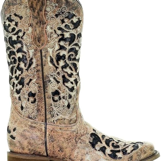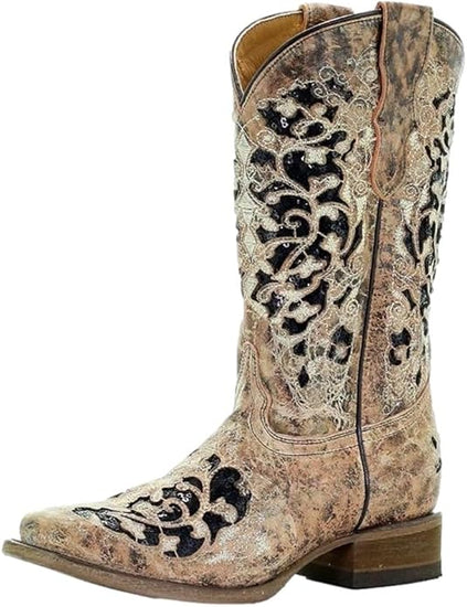 Corral Girls Glitter Inlay/Embroidery Square Toe Western Boot