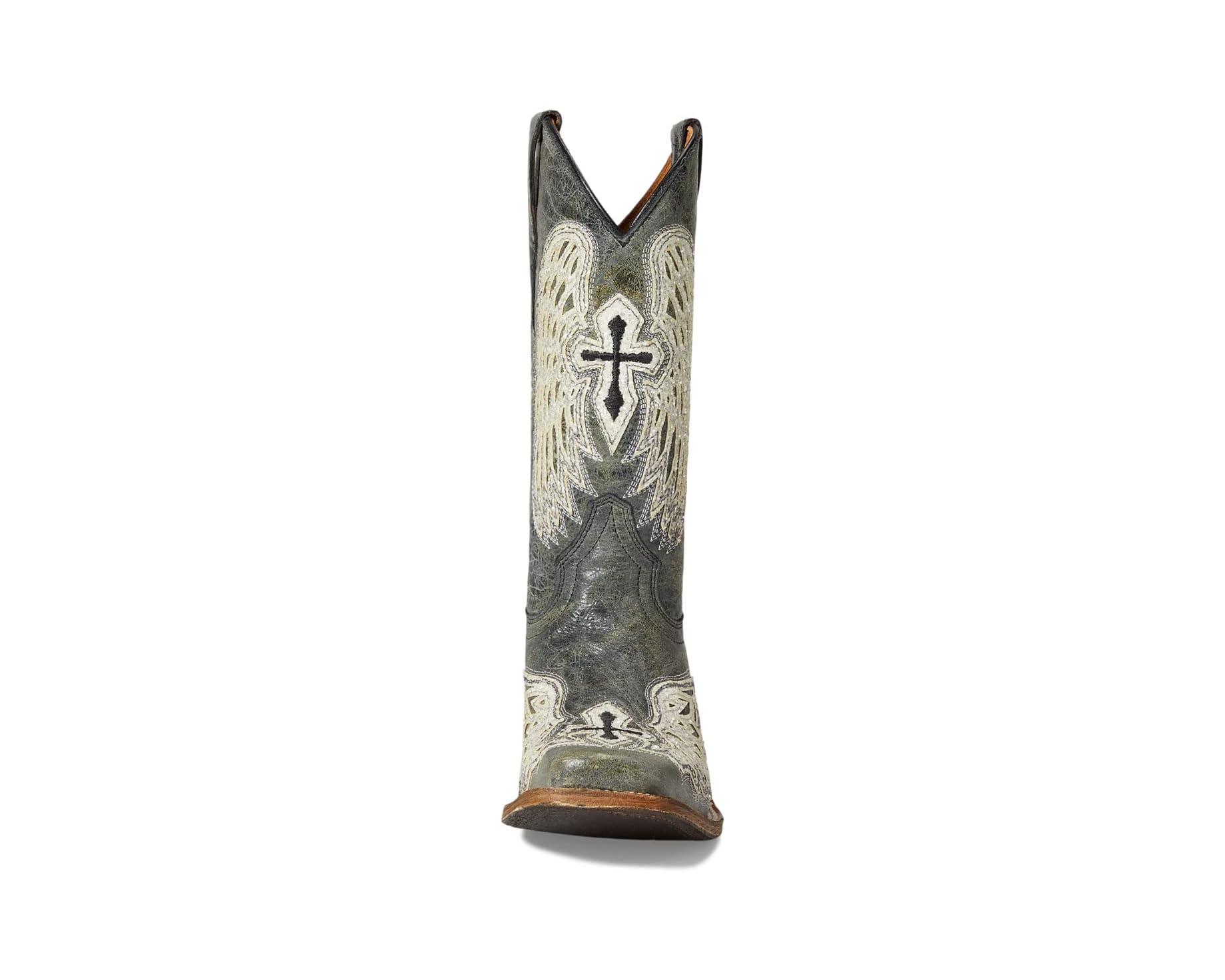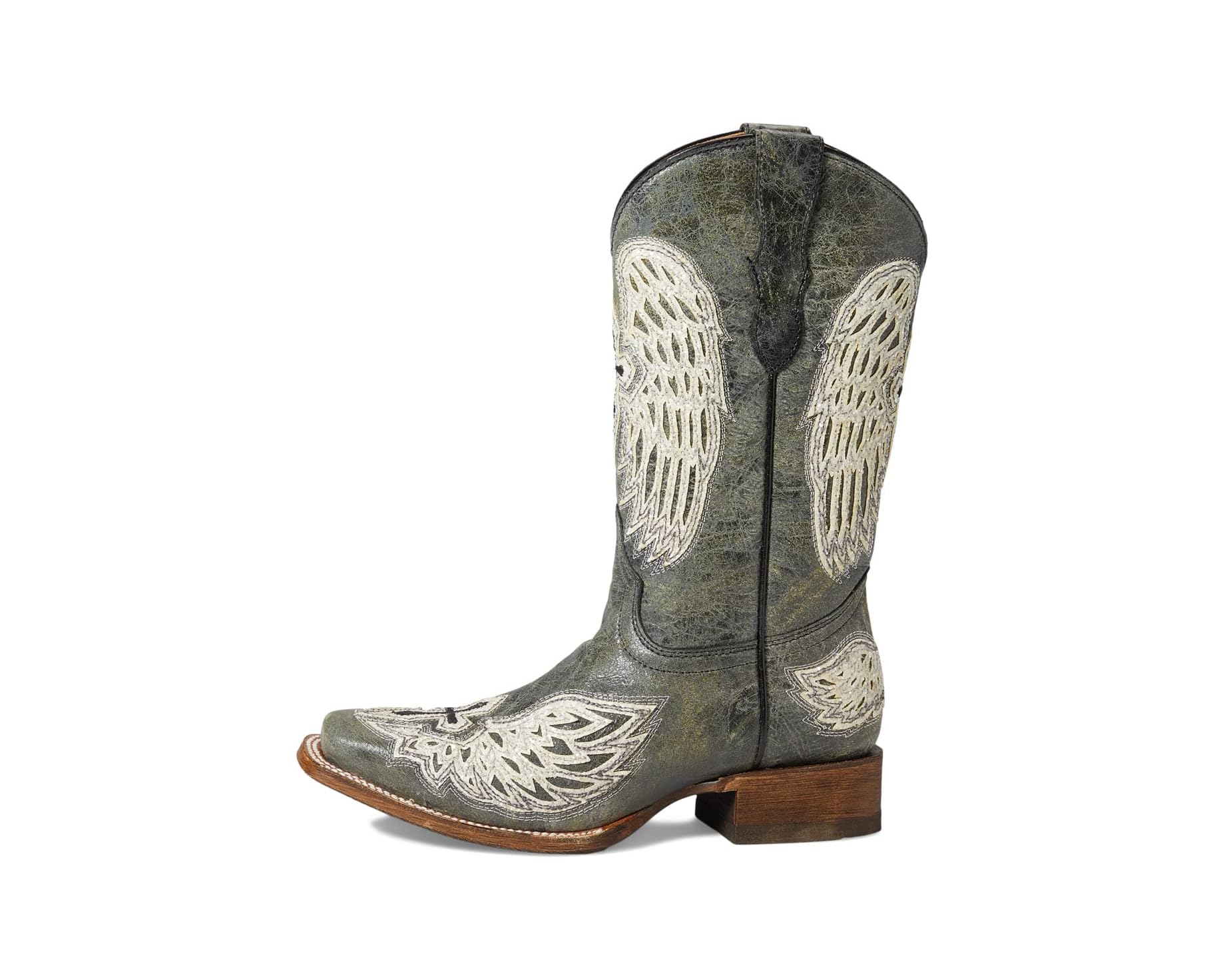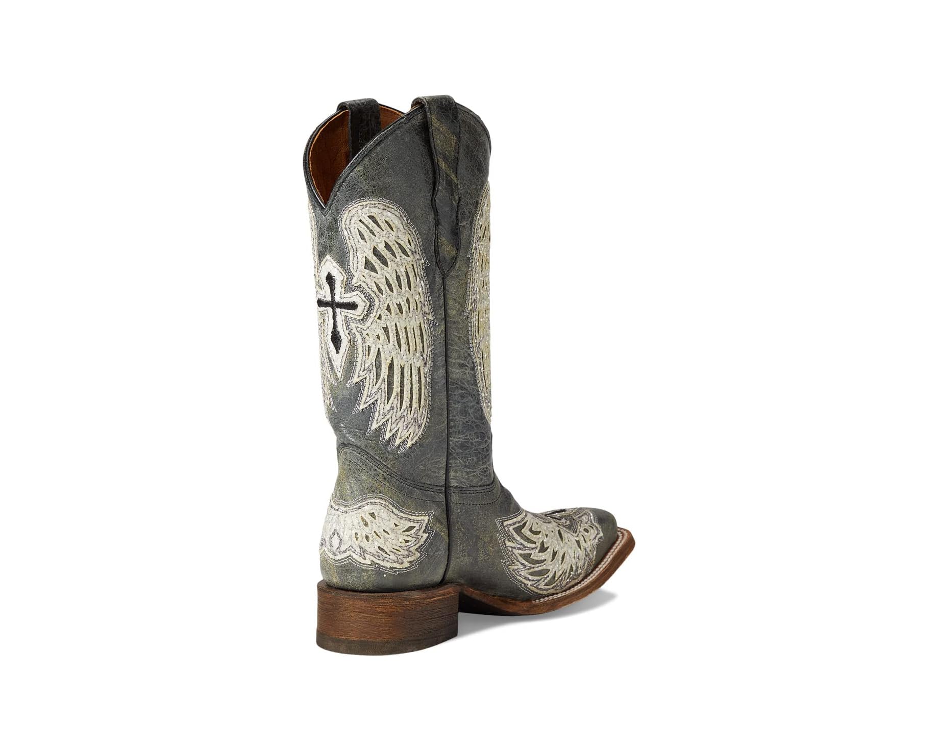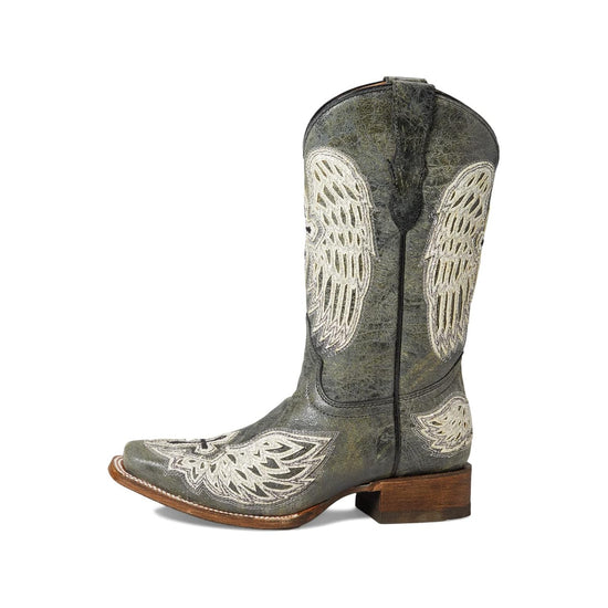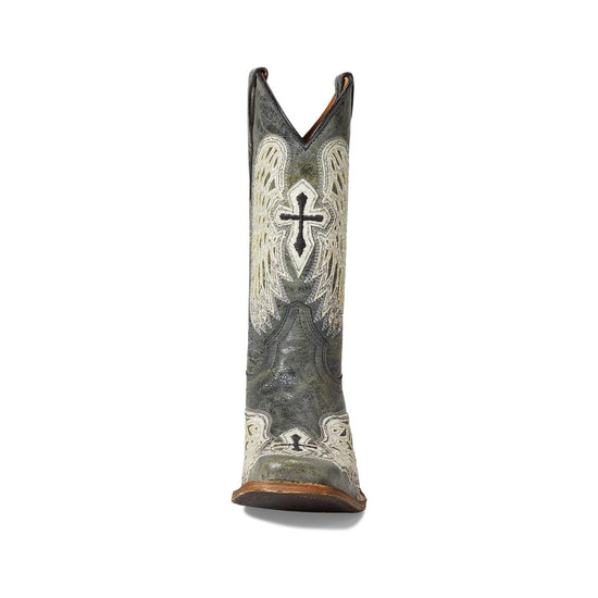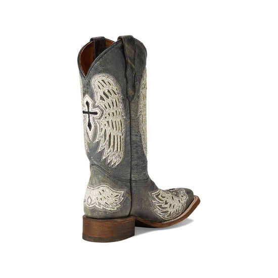 Corral Youth Girl's Black/White Leather Wings and Cross Square Toe Boots