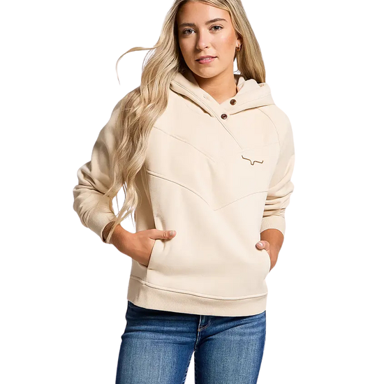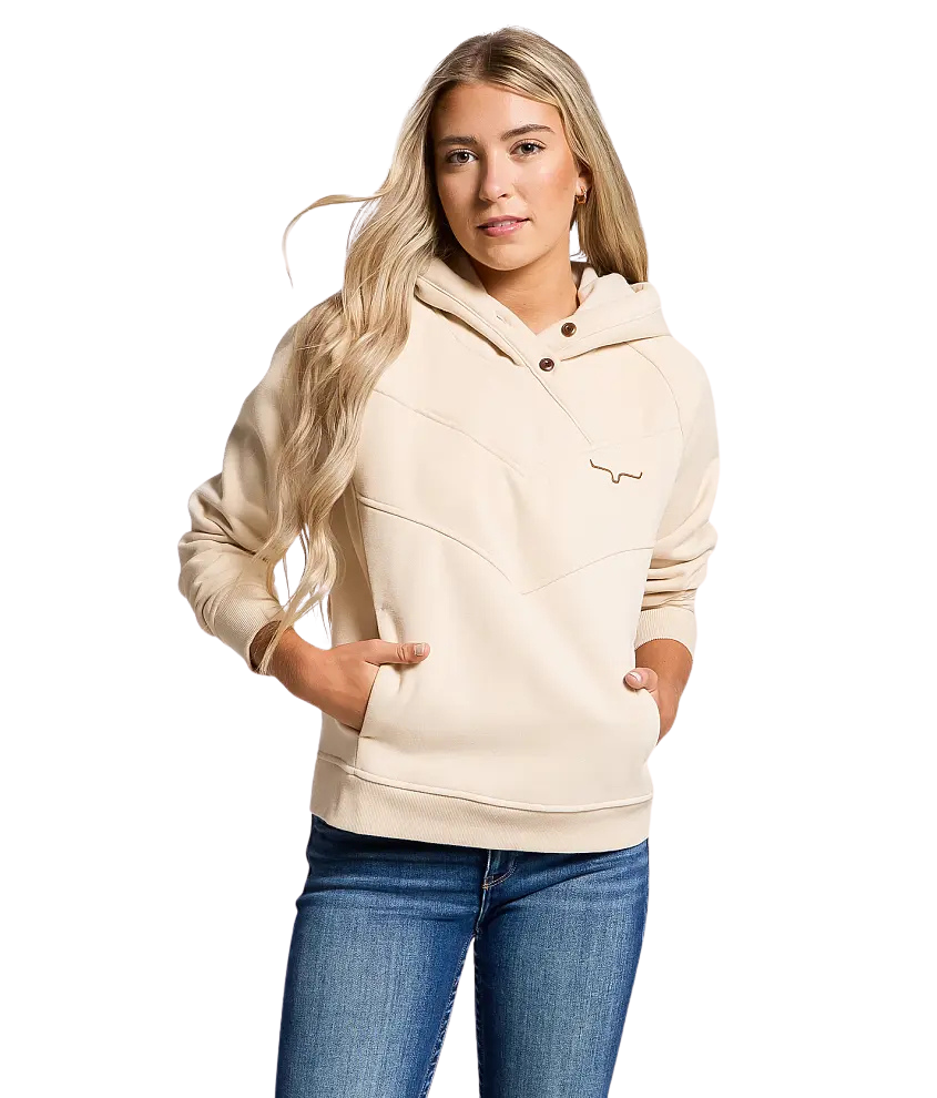 Kimes Women's Ella Hooded Henley Natural Sweatshirt