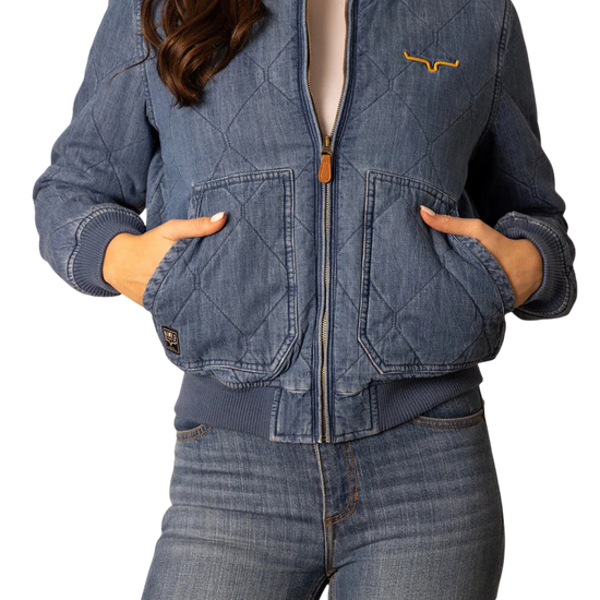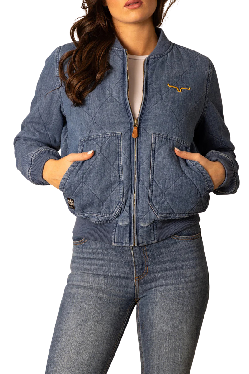 Kimes Women's Light Indigo Denim Marino Bomber Jacket
