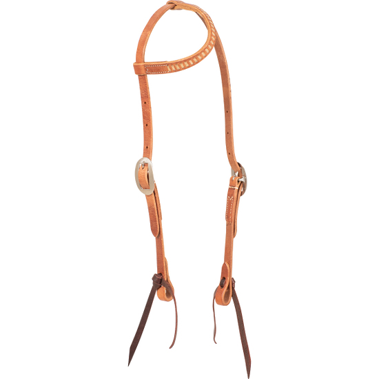 Choose this slip-ear headstall for any need. The chocolate harness leather and rawhide lacing give it a traditional look and feel.