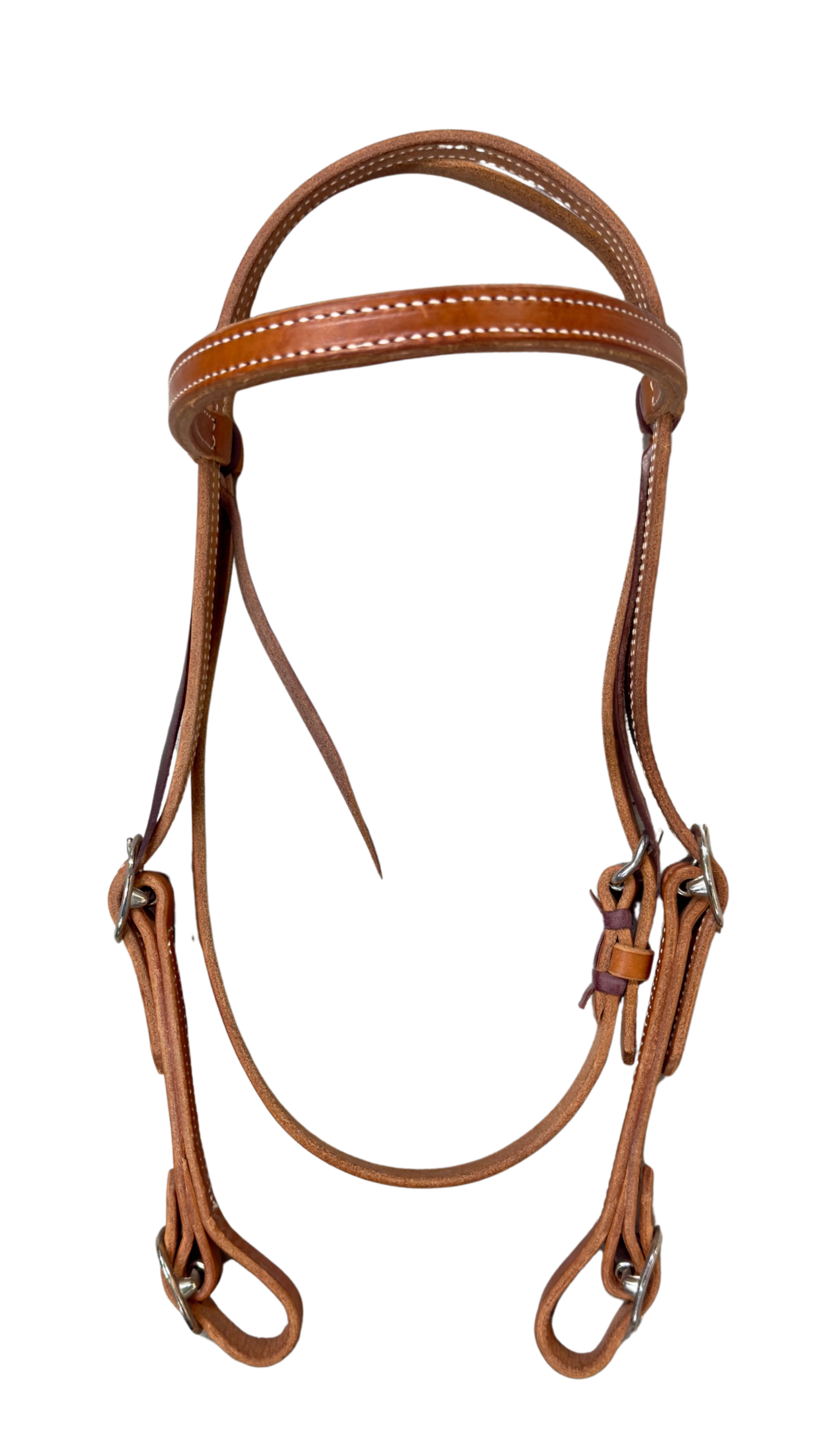 Crafted with durable oiled leather and reinforced stitching, this medium browband headstall combines strength and style. Equipped with stainless steel hardware and buckle ends, it ensures a secure fit and long-lasting performance. Elevate your riding experience with a reliable, polished piece designed for both comfort and resilience.