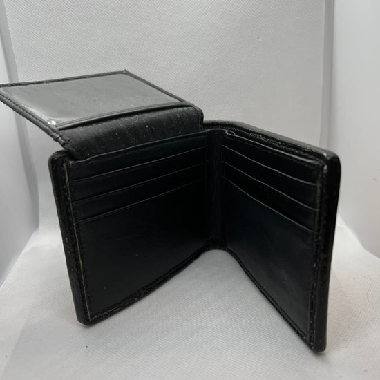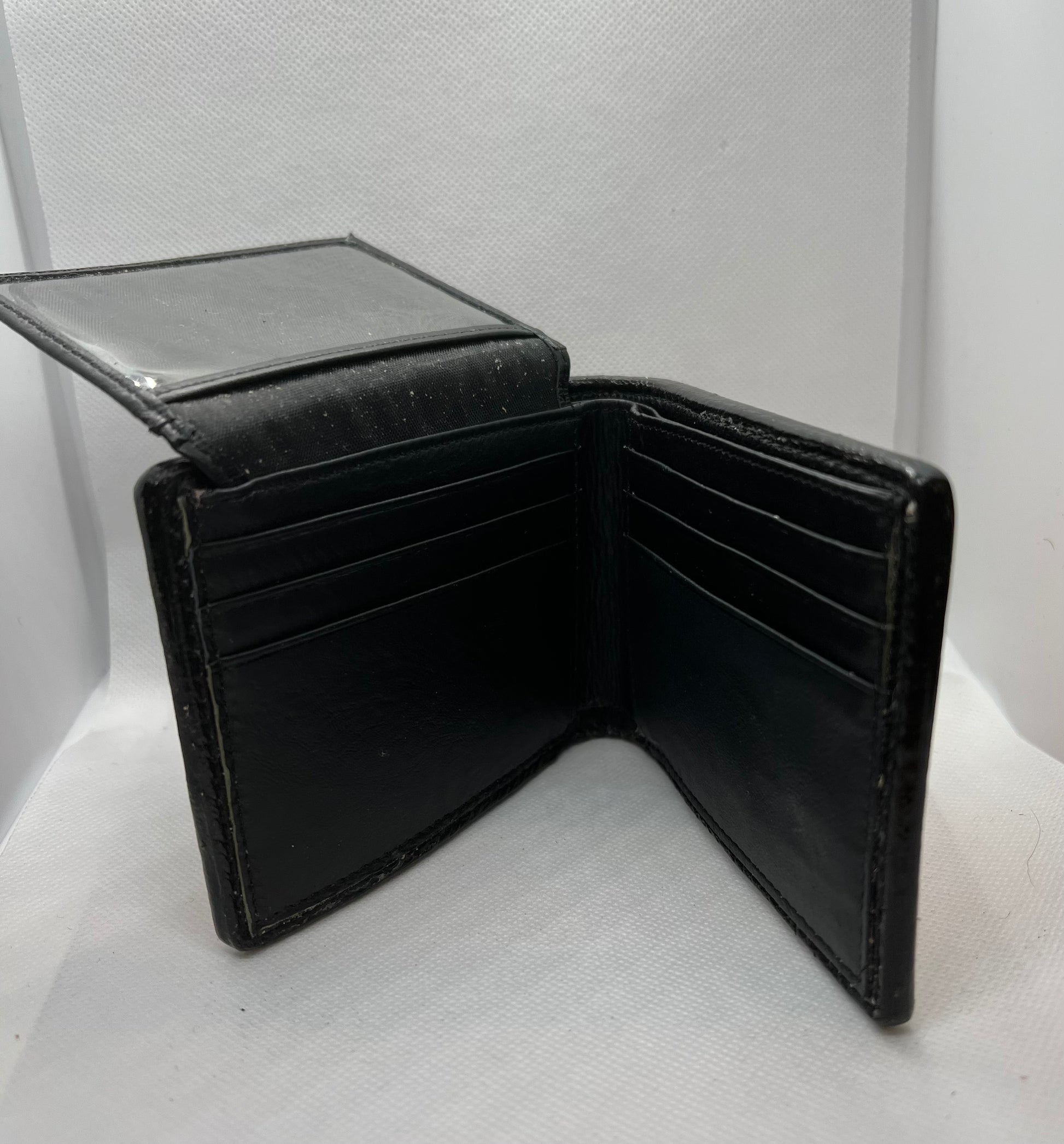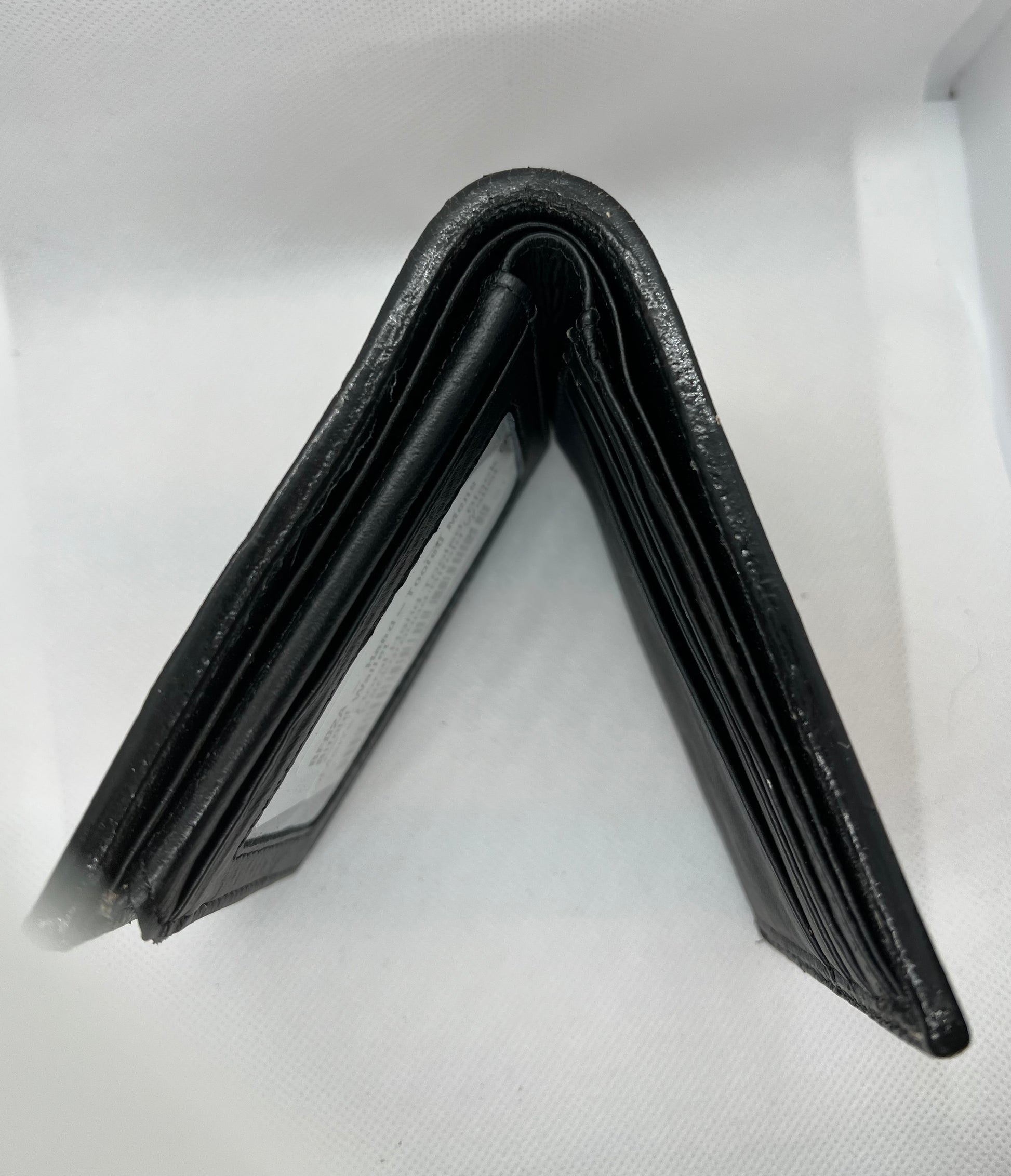 Includes double sided picture window for ID, 6 Slots for credit cards, etc., 2 long dividers for cash.