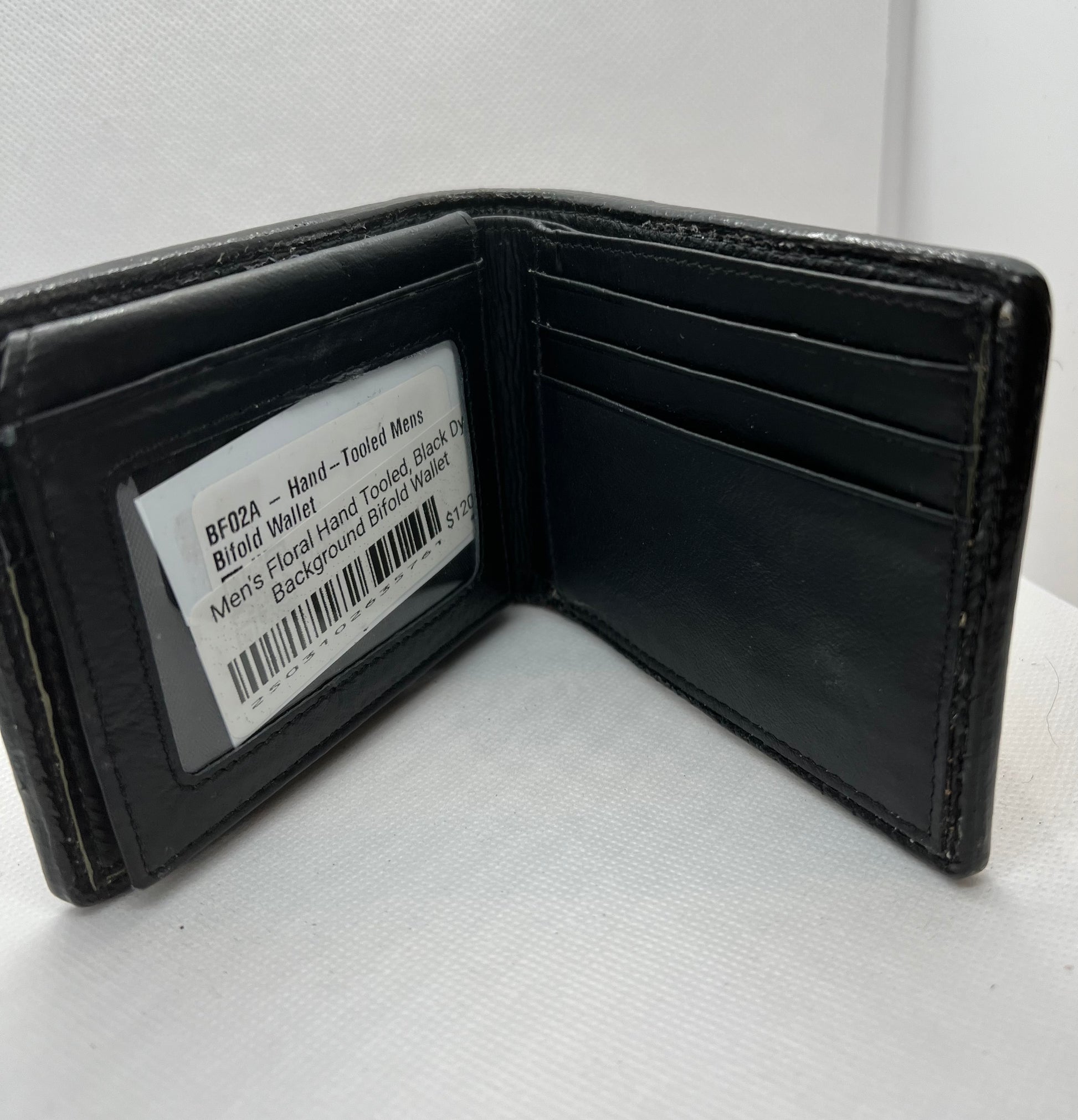 Double J Men's Floral Hand Tooled, Black Dyed Background Bifold Wallet