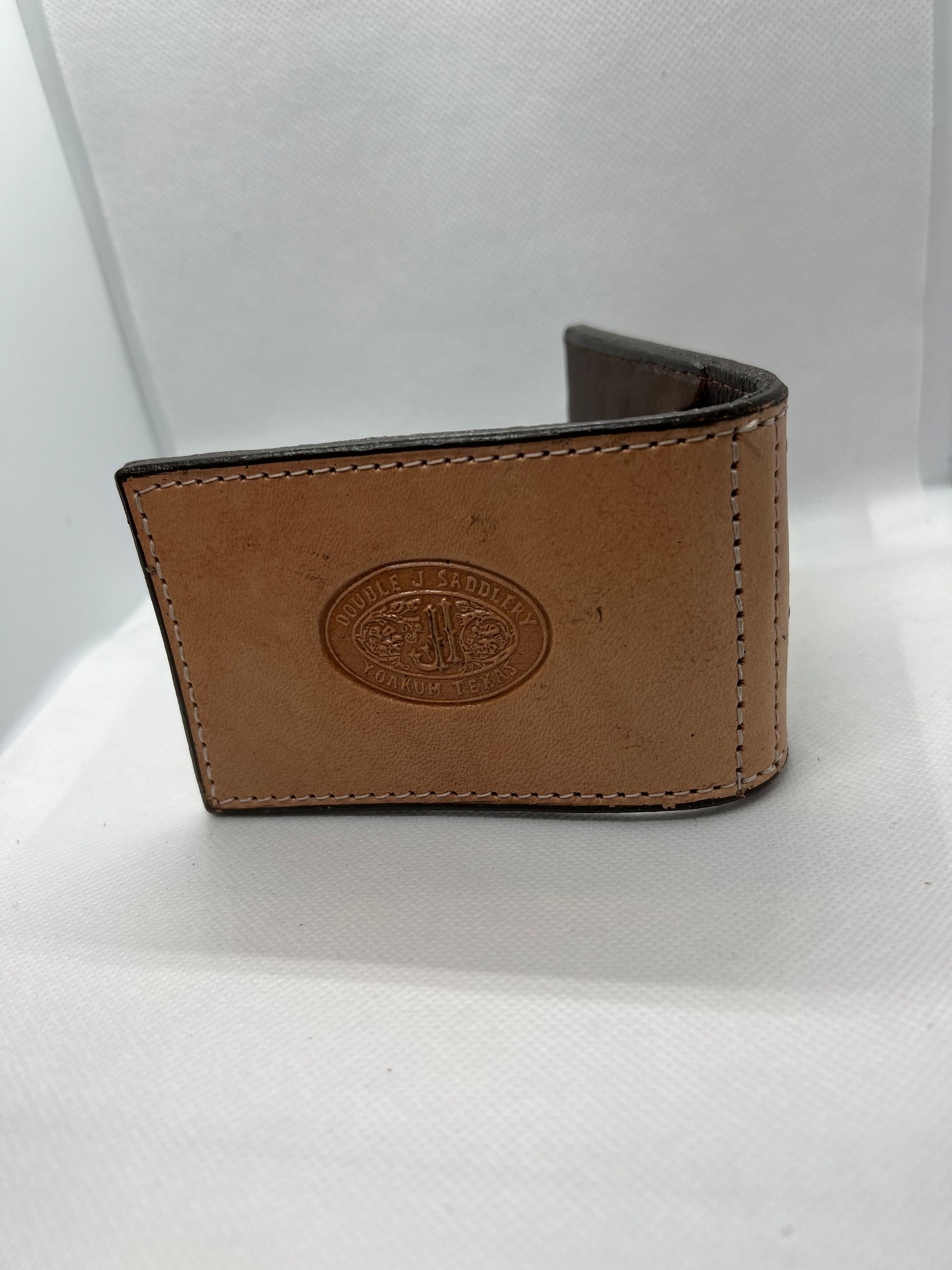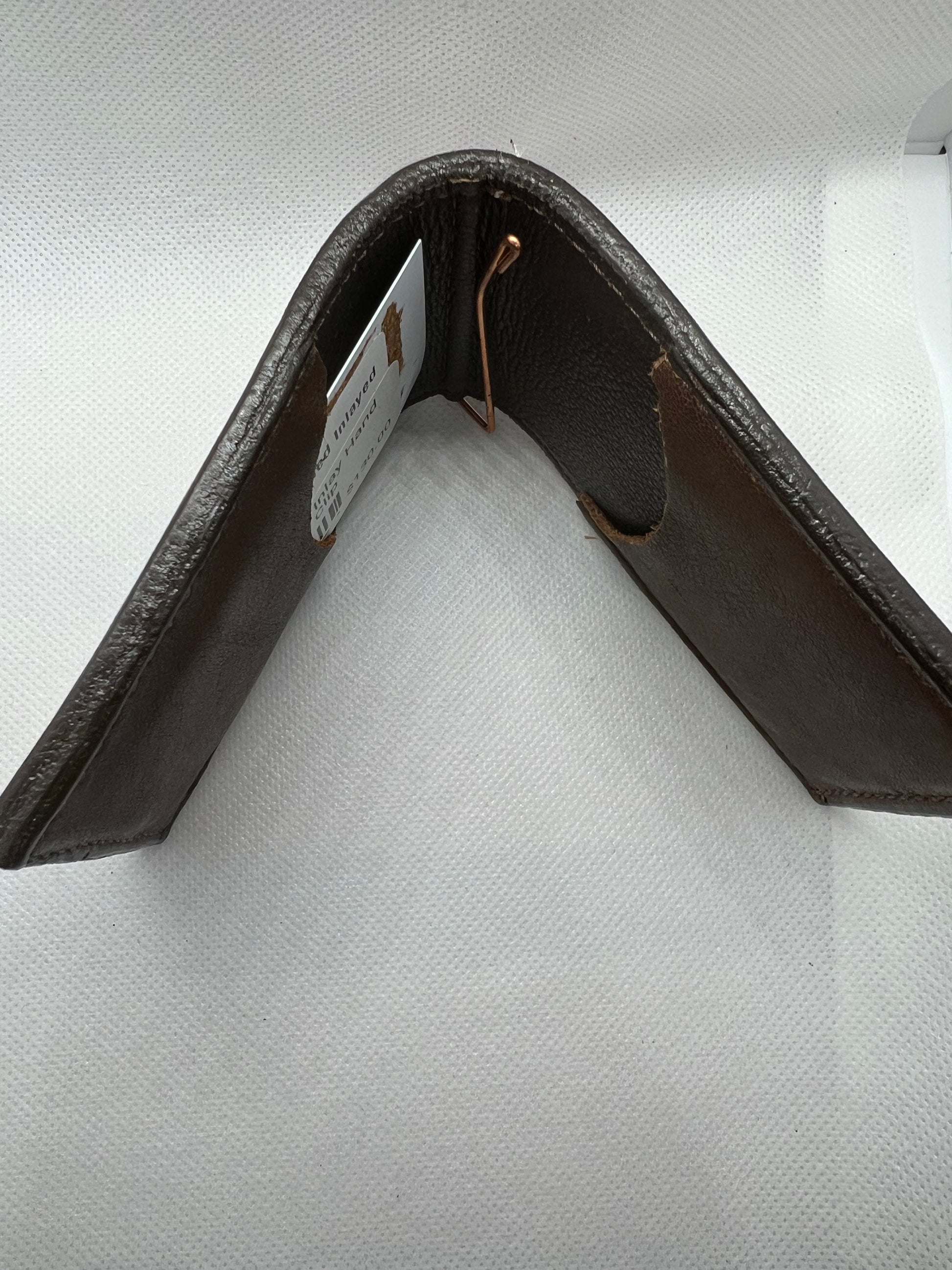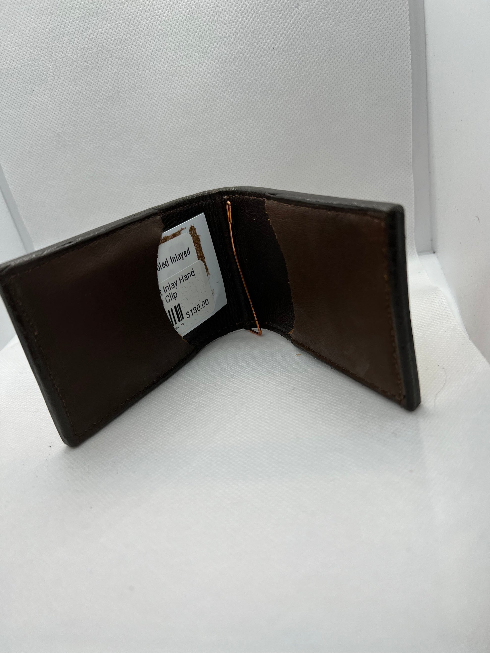 This money clip has two pockets on the inside to hold credit cards, etc, and a money clip to secure cash.