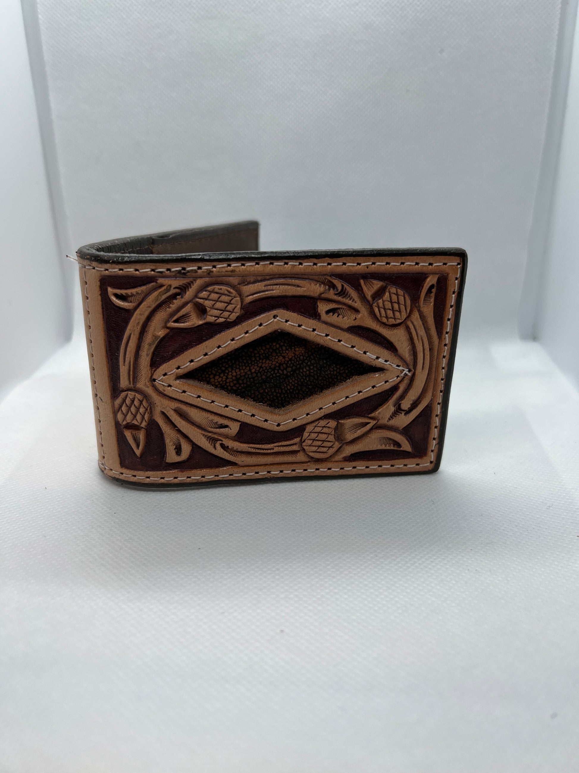 Double J Men's Safari Elephant Inlay Hand Tooled Money Clip
