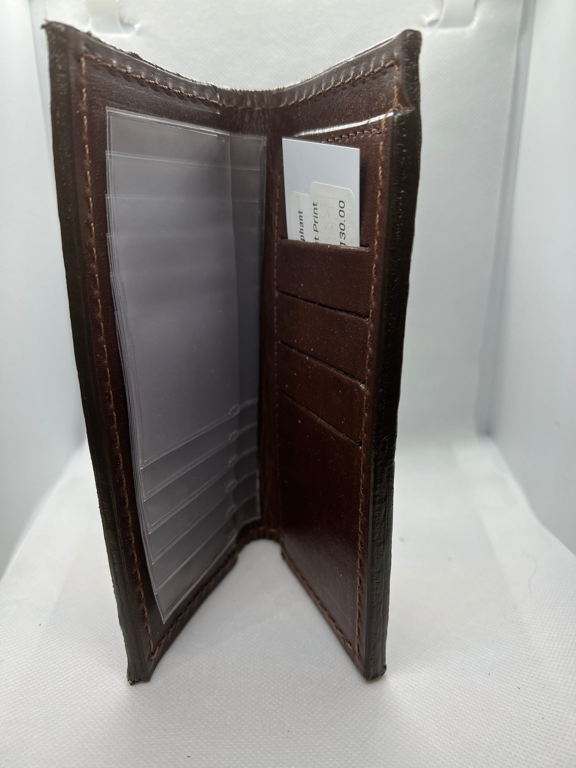 This checkbook wallet includes credit card holders, photo sleeves and checkbook slot.