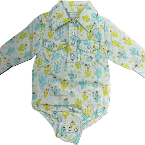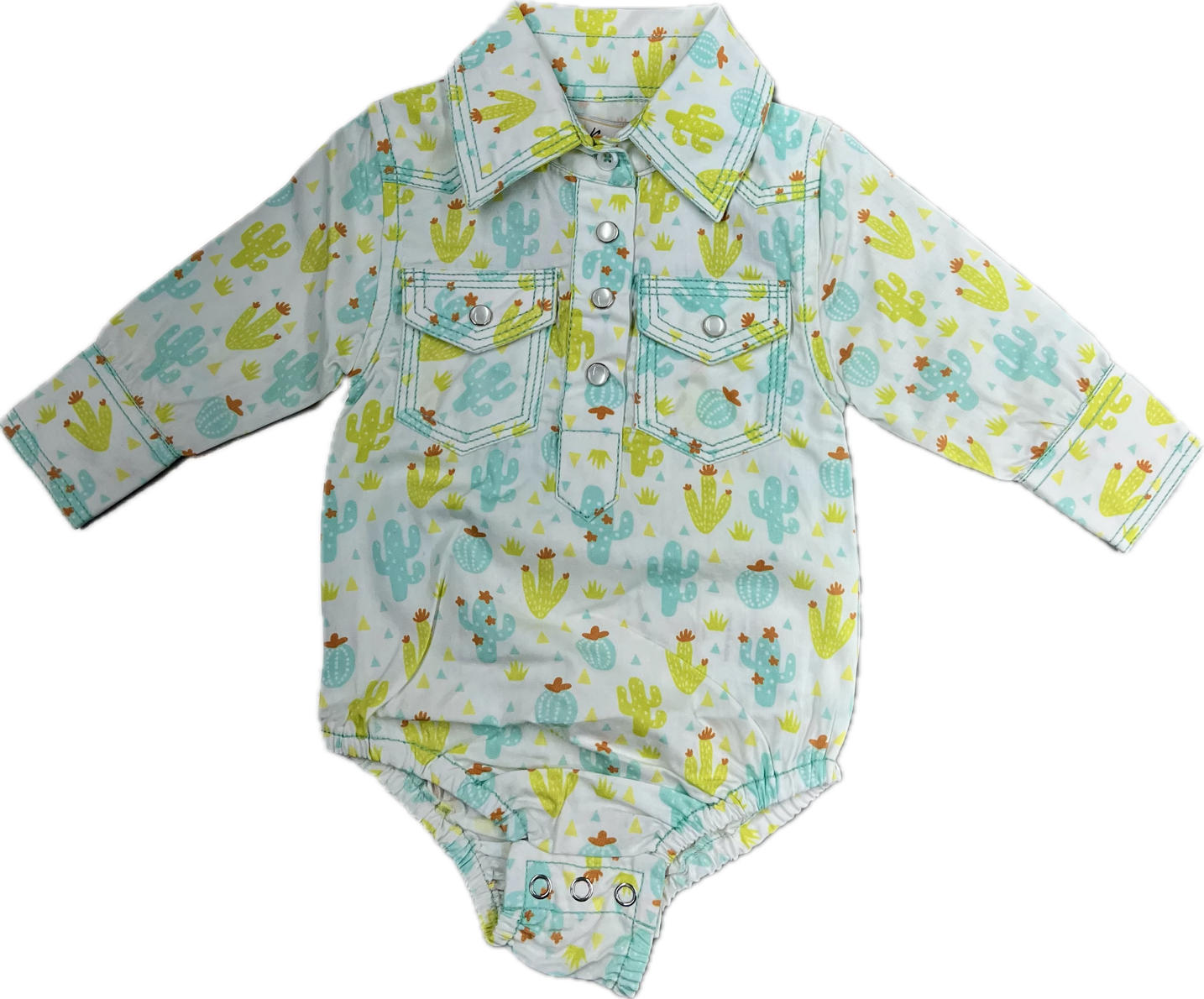 MontanaCo Cactus Print Western Onsie with Pearl Snaps