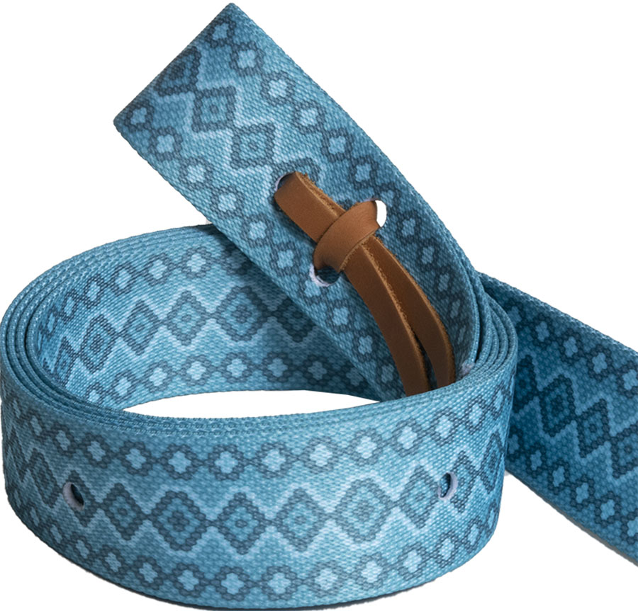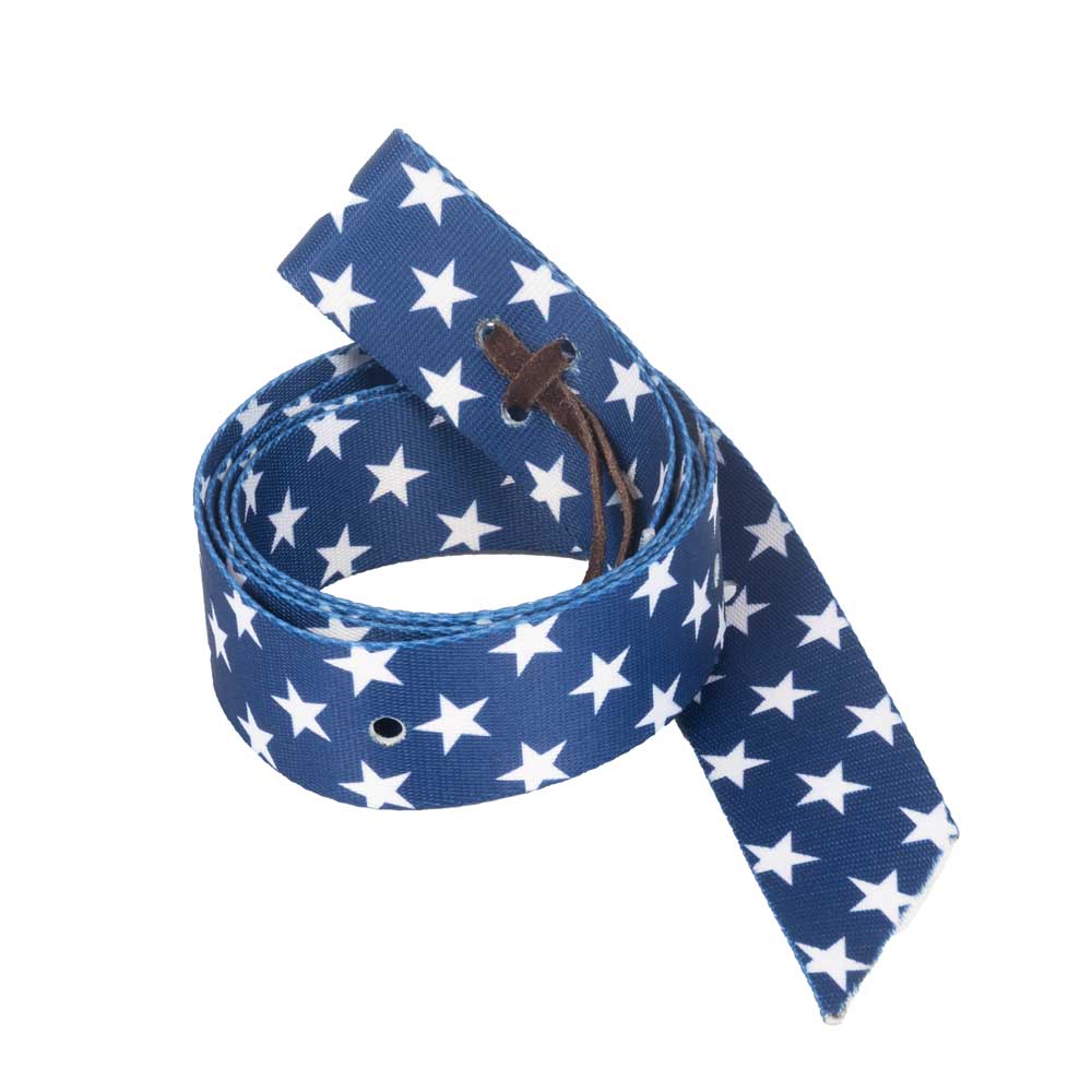 Mustang Print Nylon Tie Strap with Holes features vibrant colors to dress up your tack ensemble. Durable nylon which is soft on the hands and horse and has 10 adjustment holes for buckles. Leather ties.