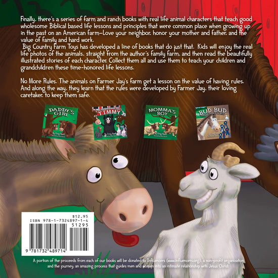 Finally, there’s a series of farm and ranch books with real-life animal characters that teach good wholesome Biblical based life lessons and principles that were commonplace when growing up in the past on an American farm—Love your neighbor, honor your mother and father, and the value of family and hard work.