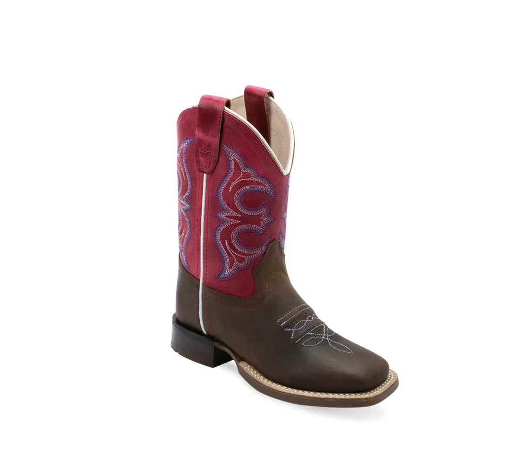 Old West Li' Girl's Distressed Brown and Fuchsia Western Boot