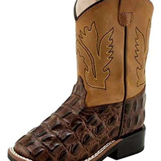 Old West Lil' Kid's Brown Caiman Gator Print Cowboy Boots