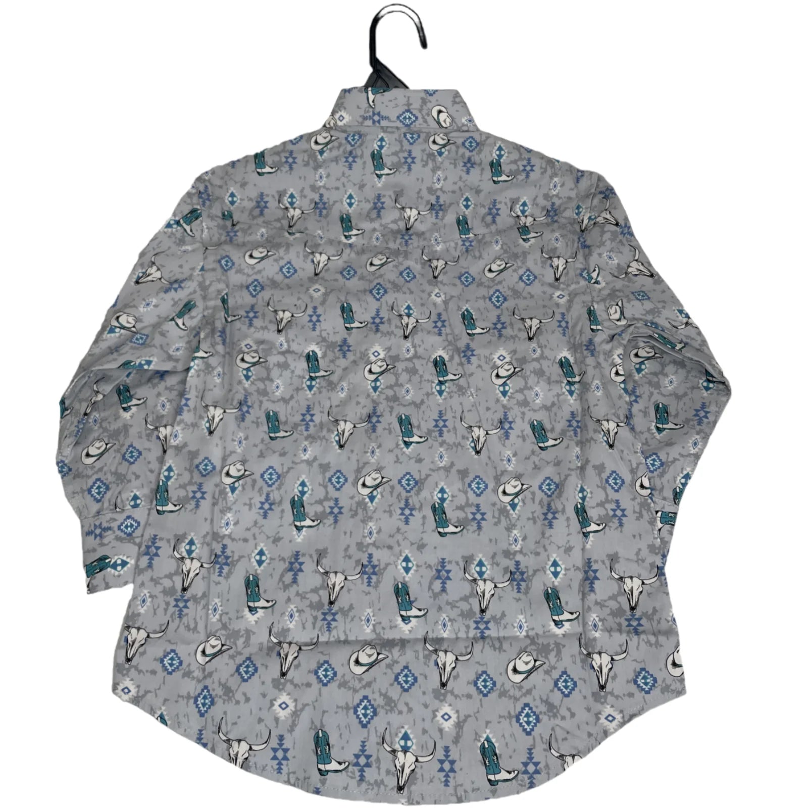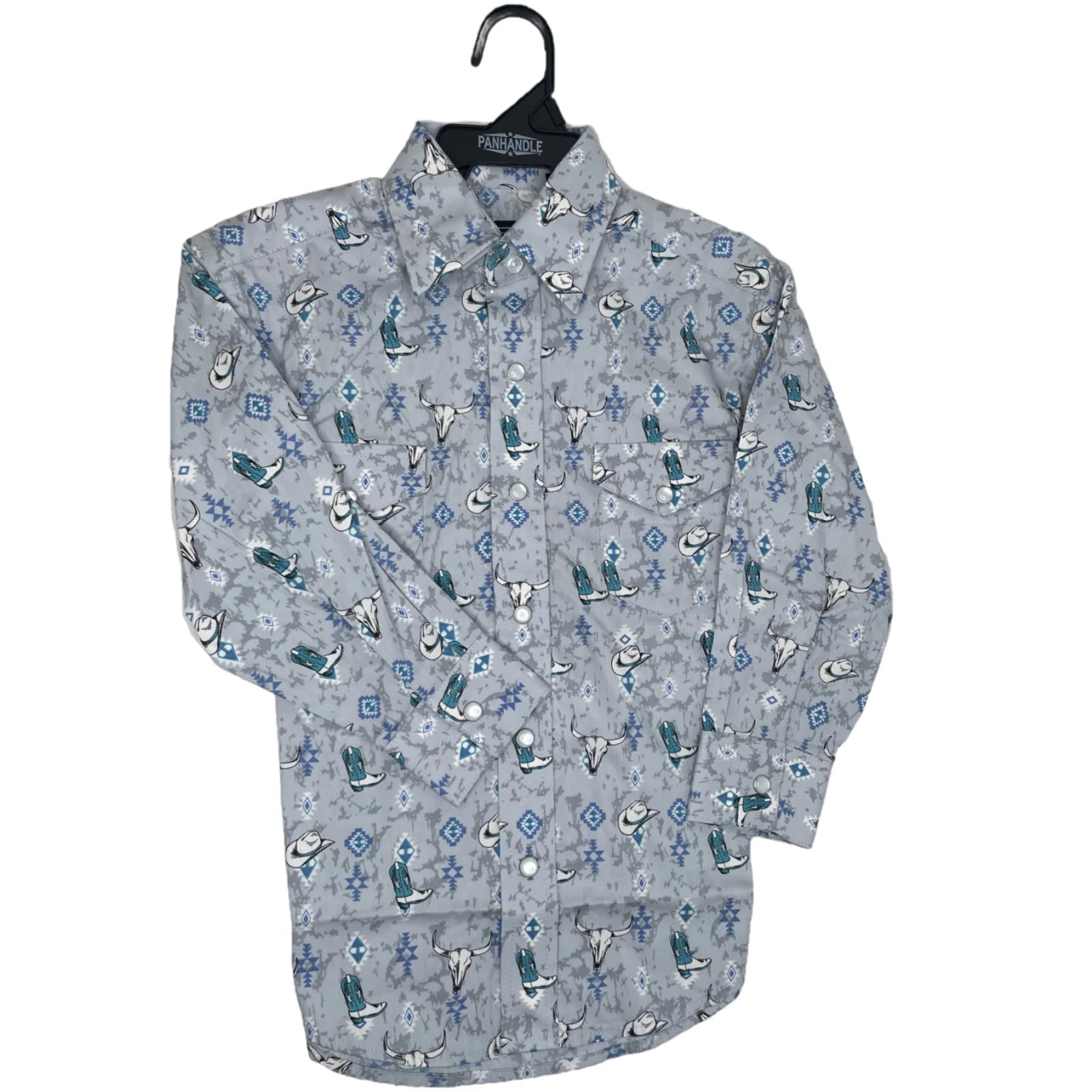 Panhandle Rough Stock Boy's Southwest Print Grey Snap Long Sleeve Shirt