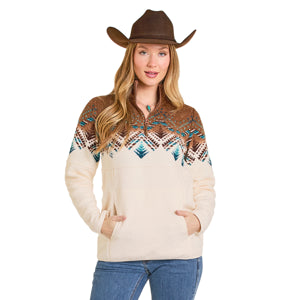 Panhandle Slim Women's Cream Border Print Berber Quarter Zip Jacket