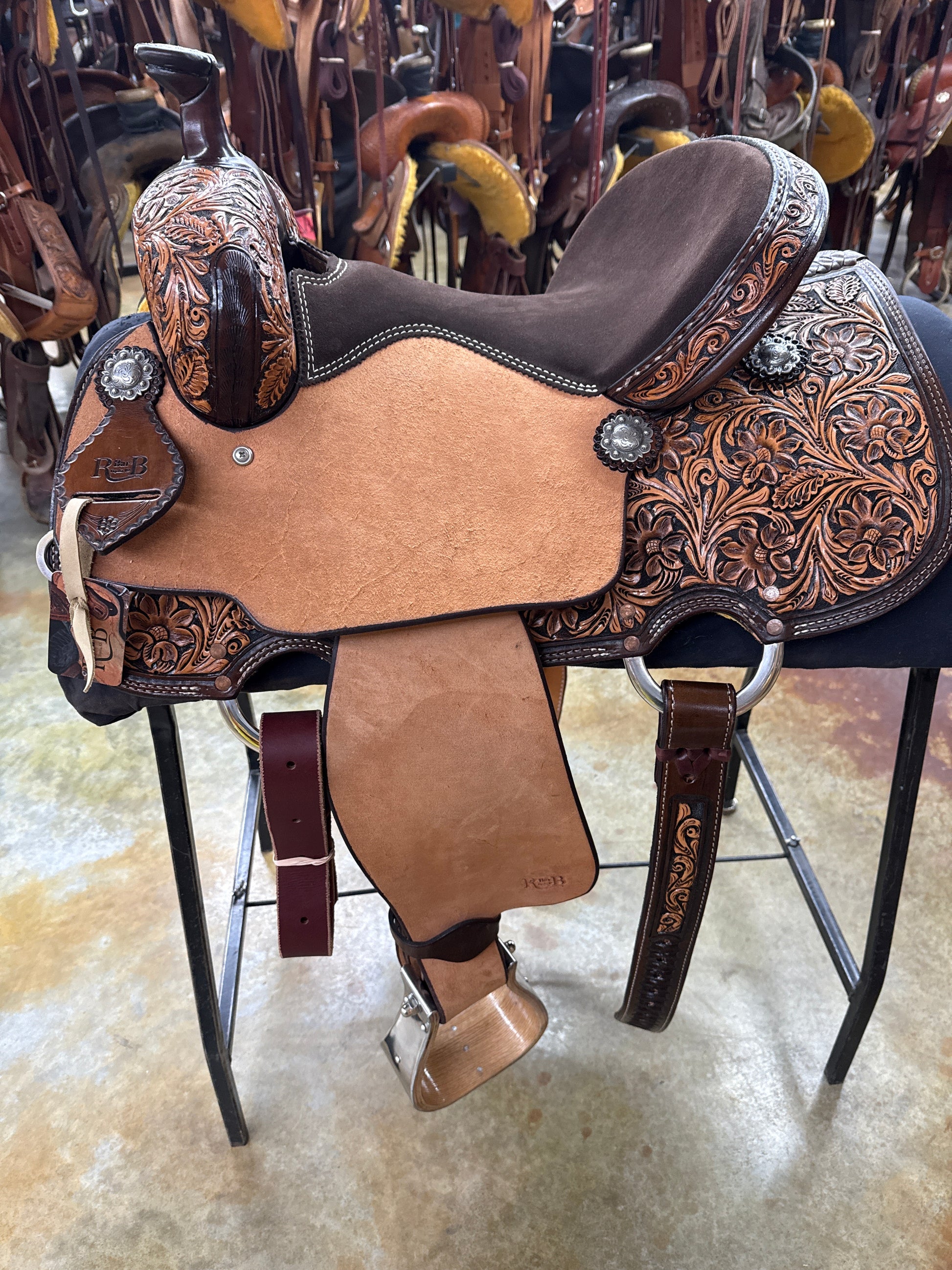 1/2 Tool Caddo Rose, Vintage Finish, Chocolate Suede Seat, Bell Stirrups