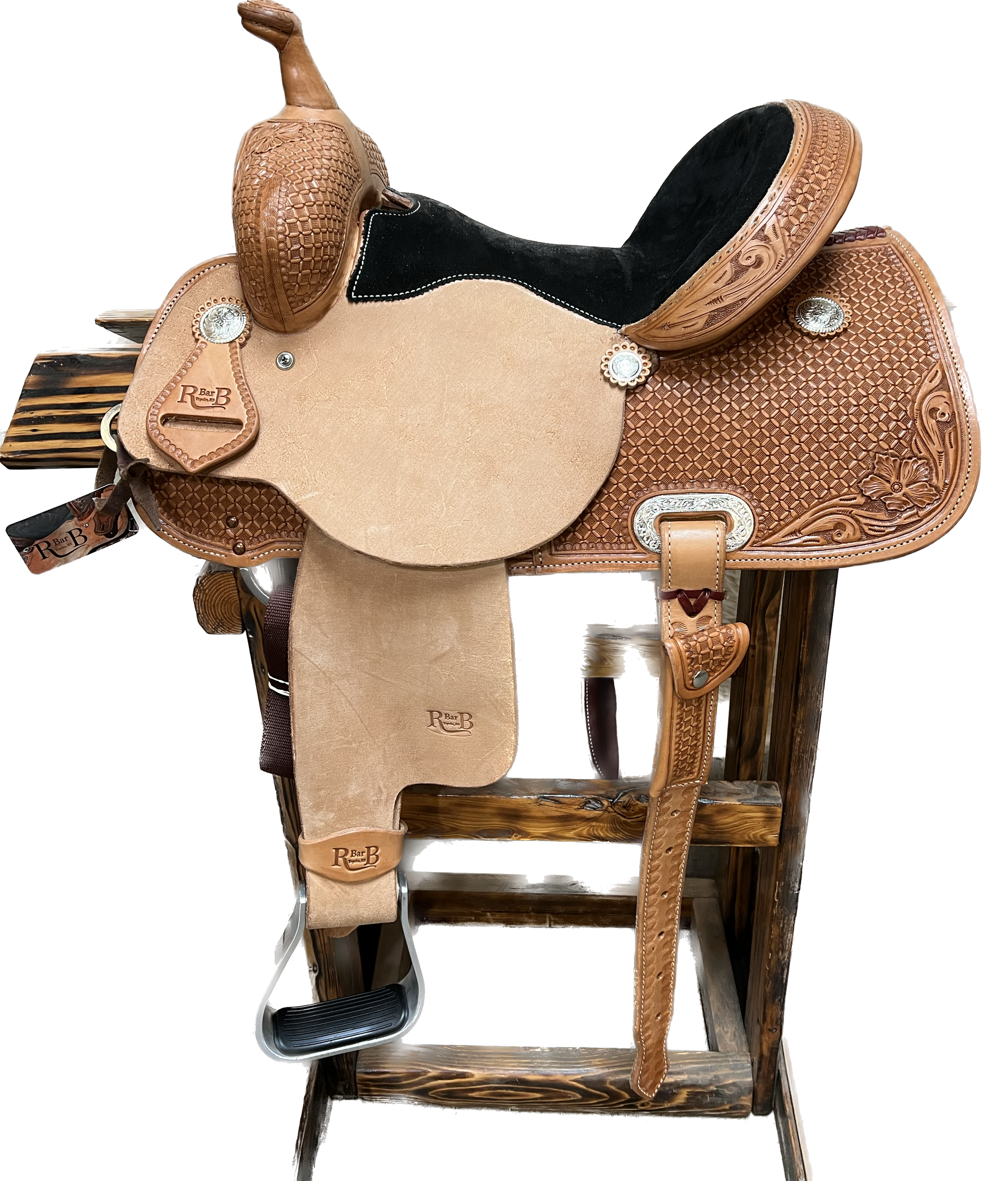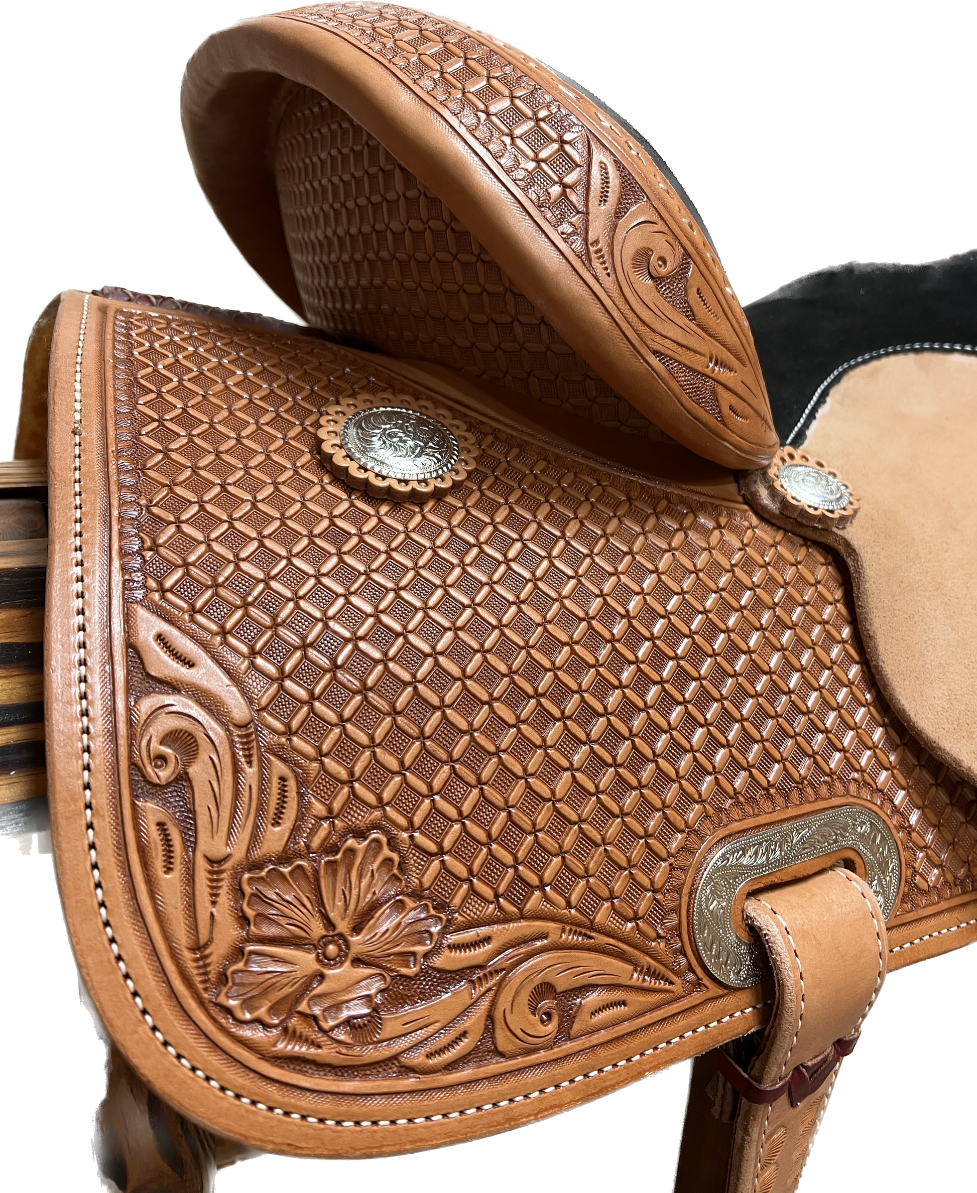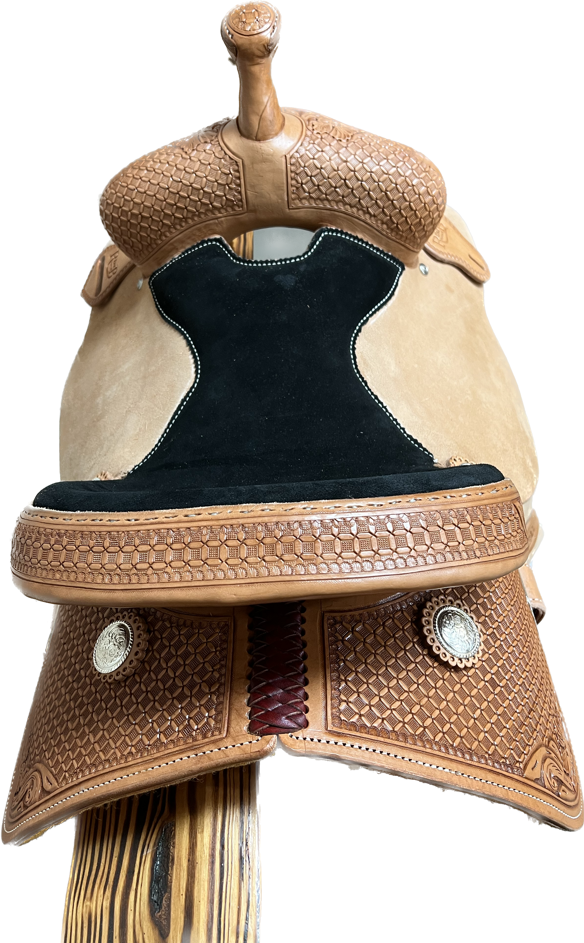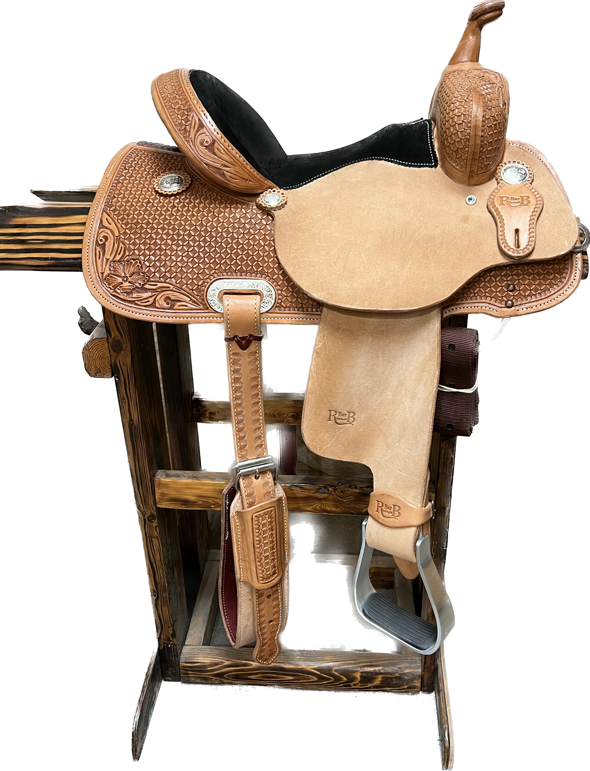 Half Tooled Combo Roughout Jockey and Fender Complete Flank Cinch Aluminum Barrel Stirrup Full Suede Padded Seat