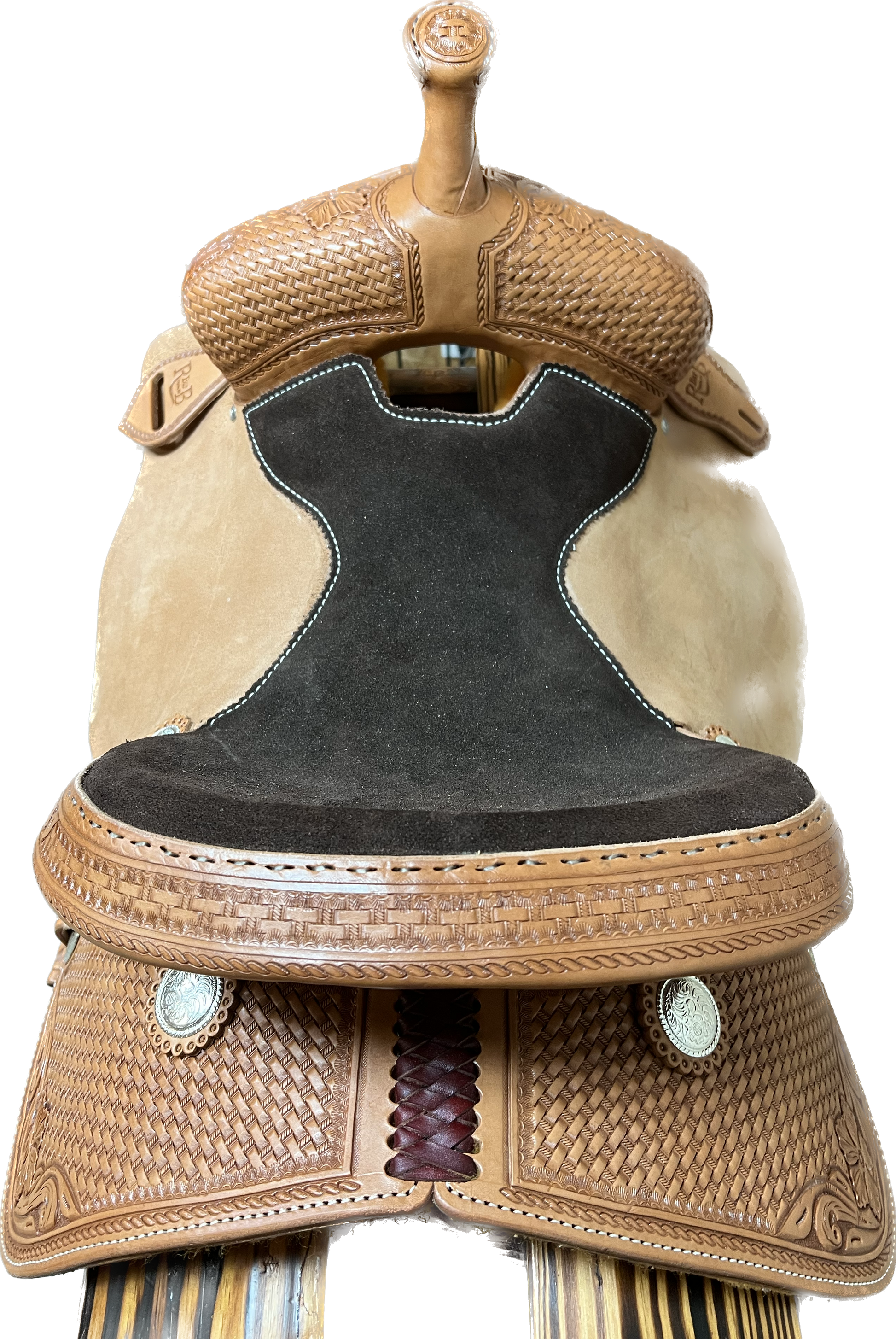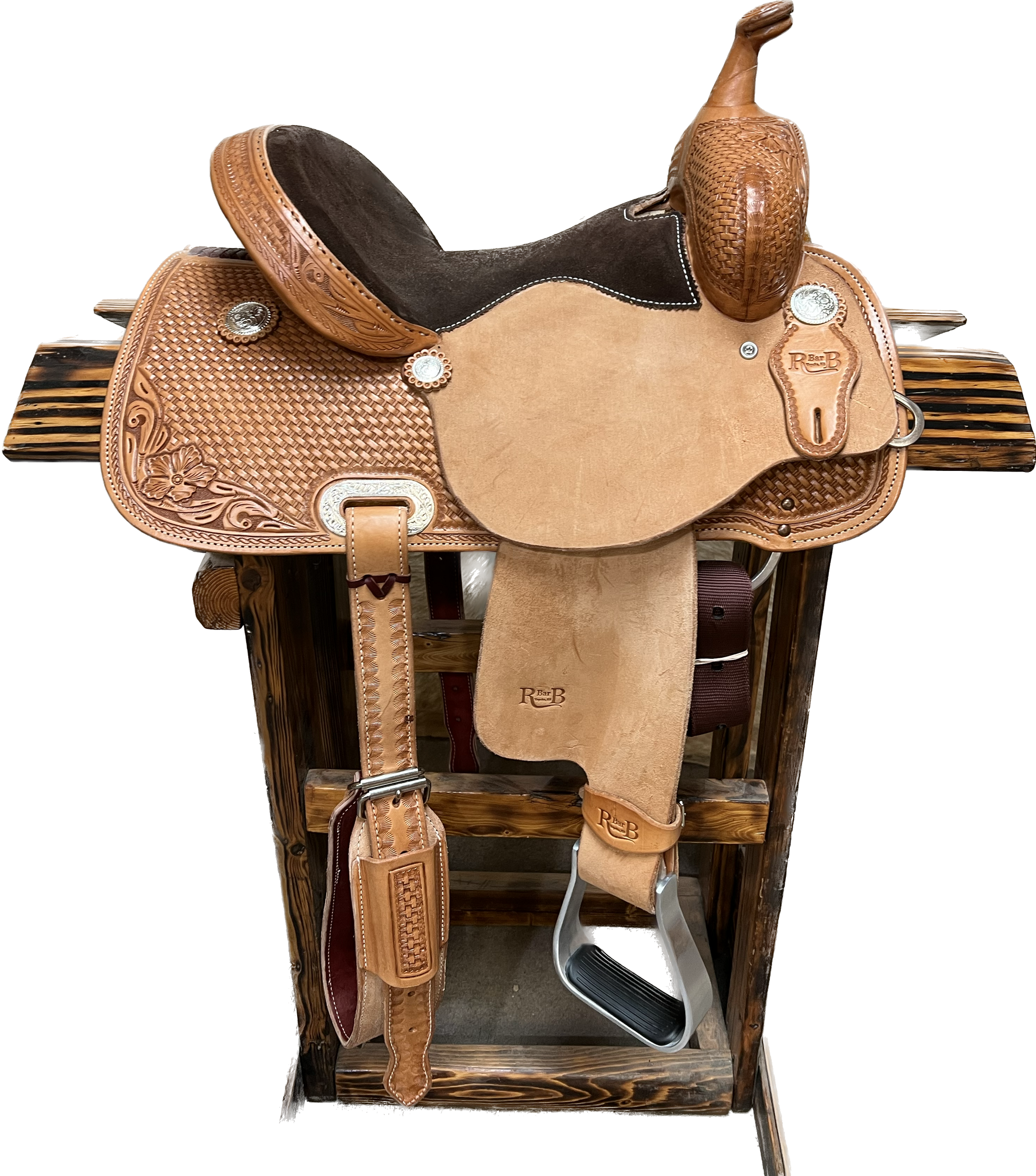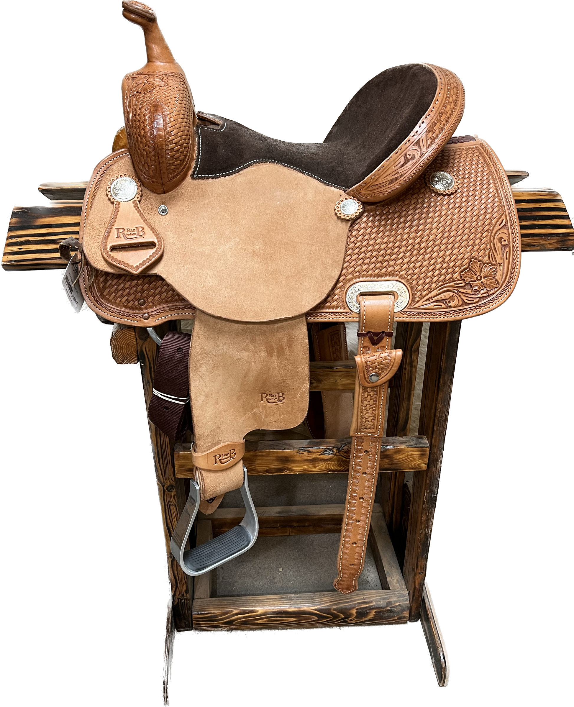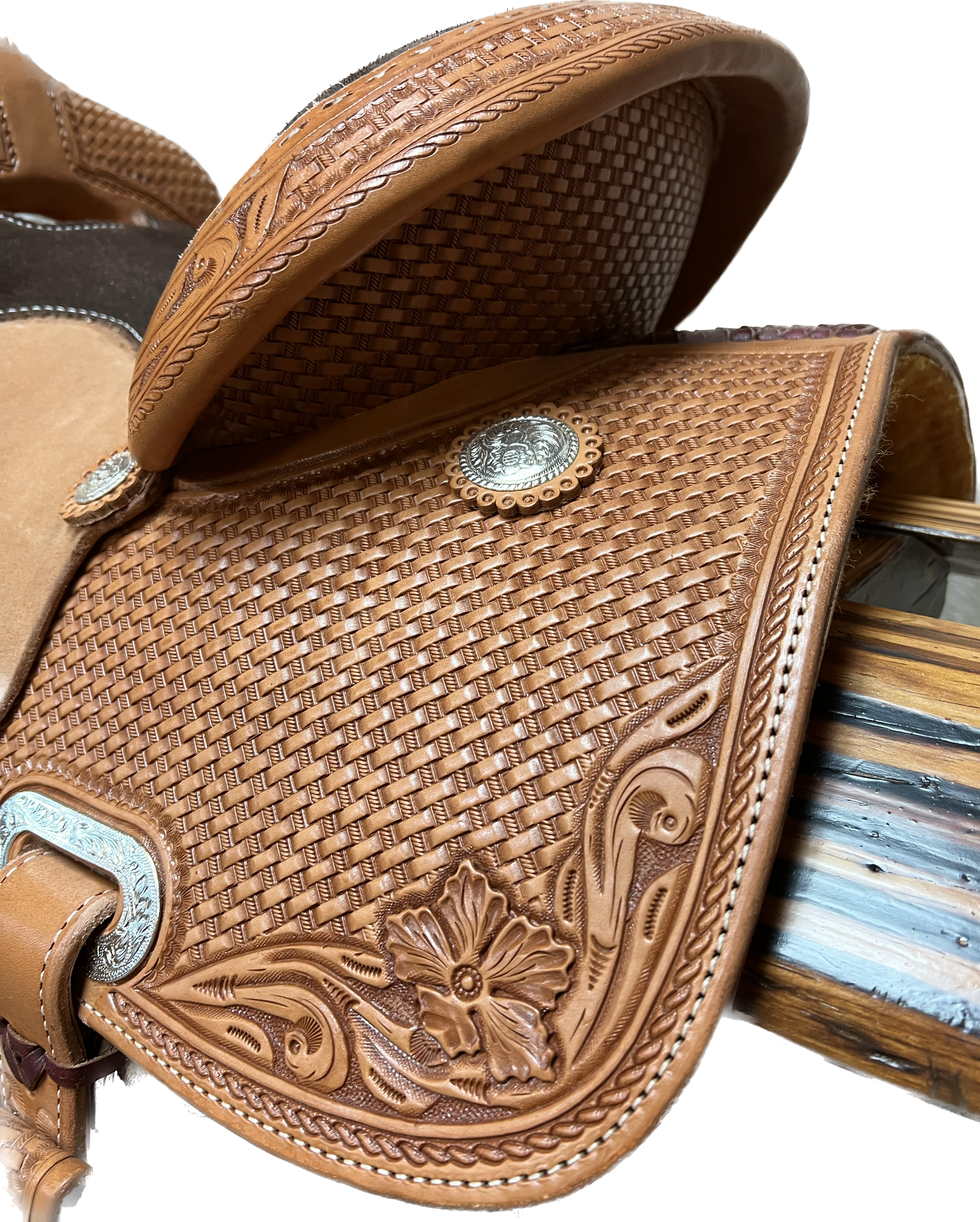 Half Tooled Combo Roughout Jockey and Fender Complete Flank Cinch Aluminum Barrel Stirrup Full Suede Padded Seat
