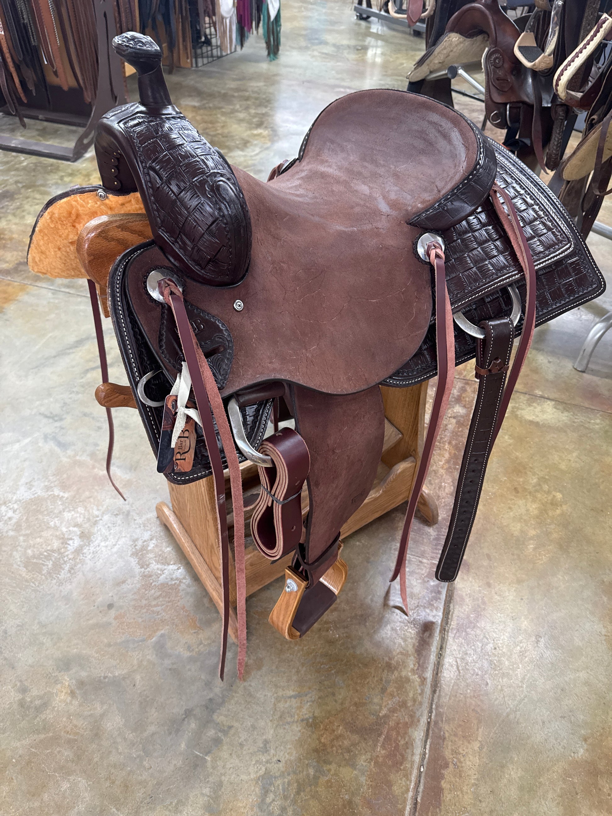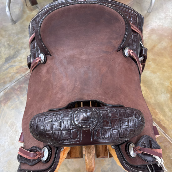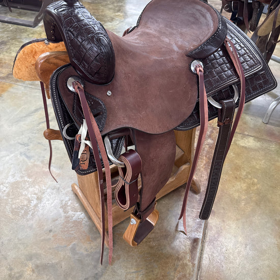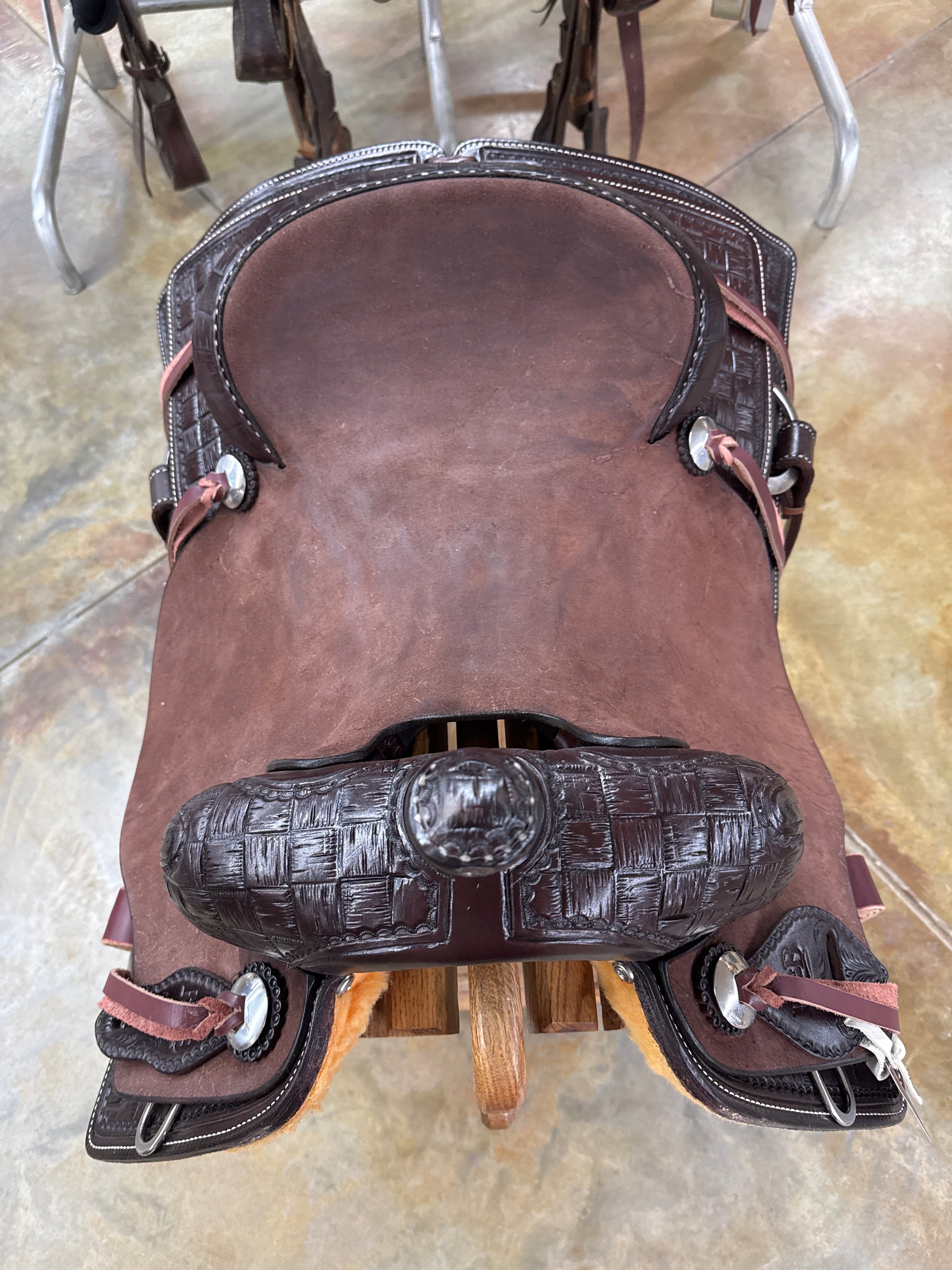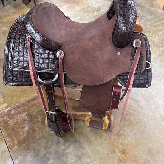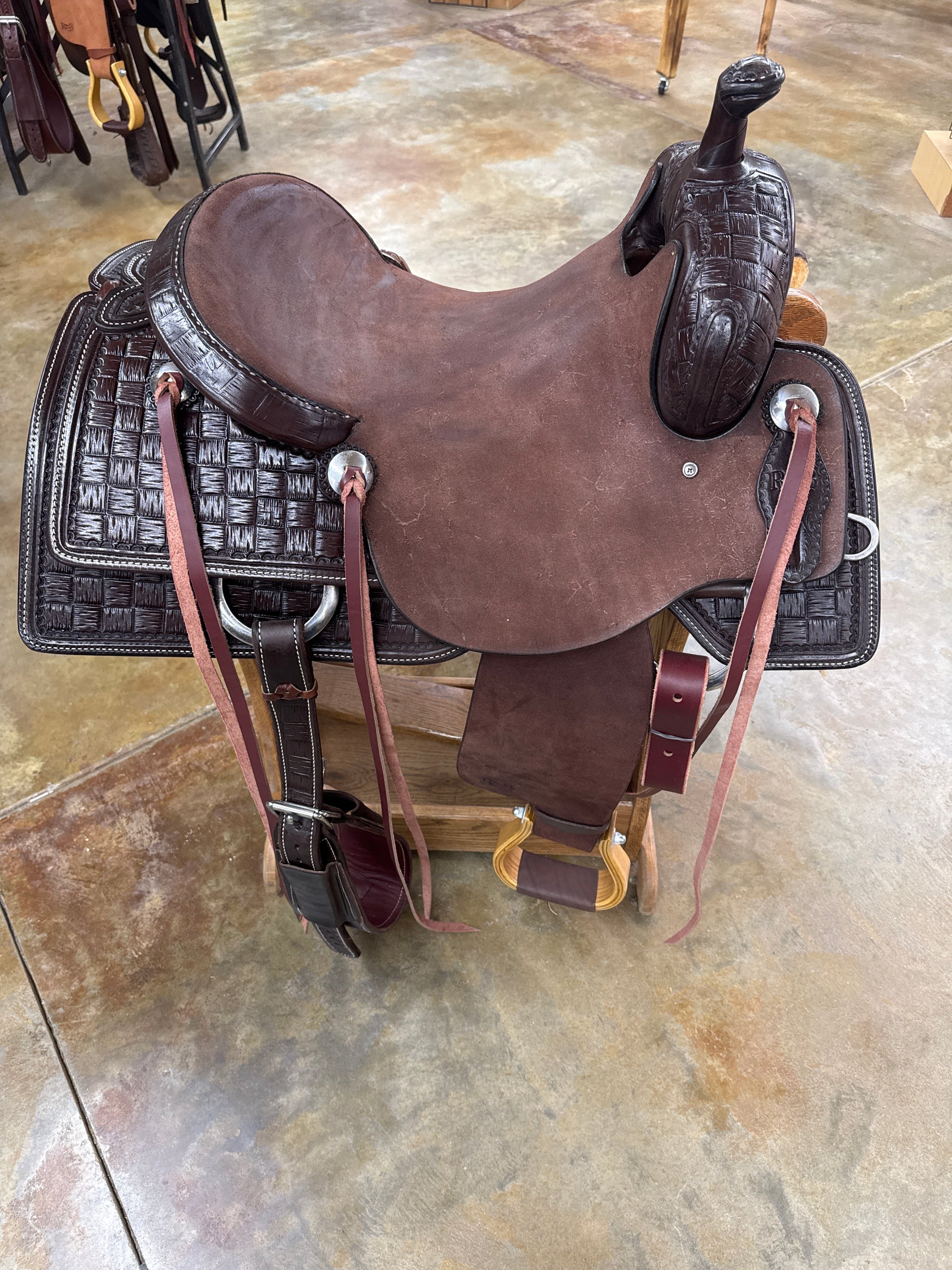 1/2 Tool Big Basket, Chocolate Leather, Hard Seat, Roughout Seat/Jockey/Fender, Cheyenne Roll, Saddle Strings, Wood Stirrups
