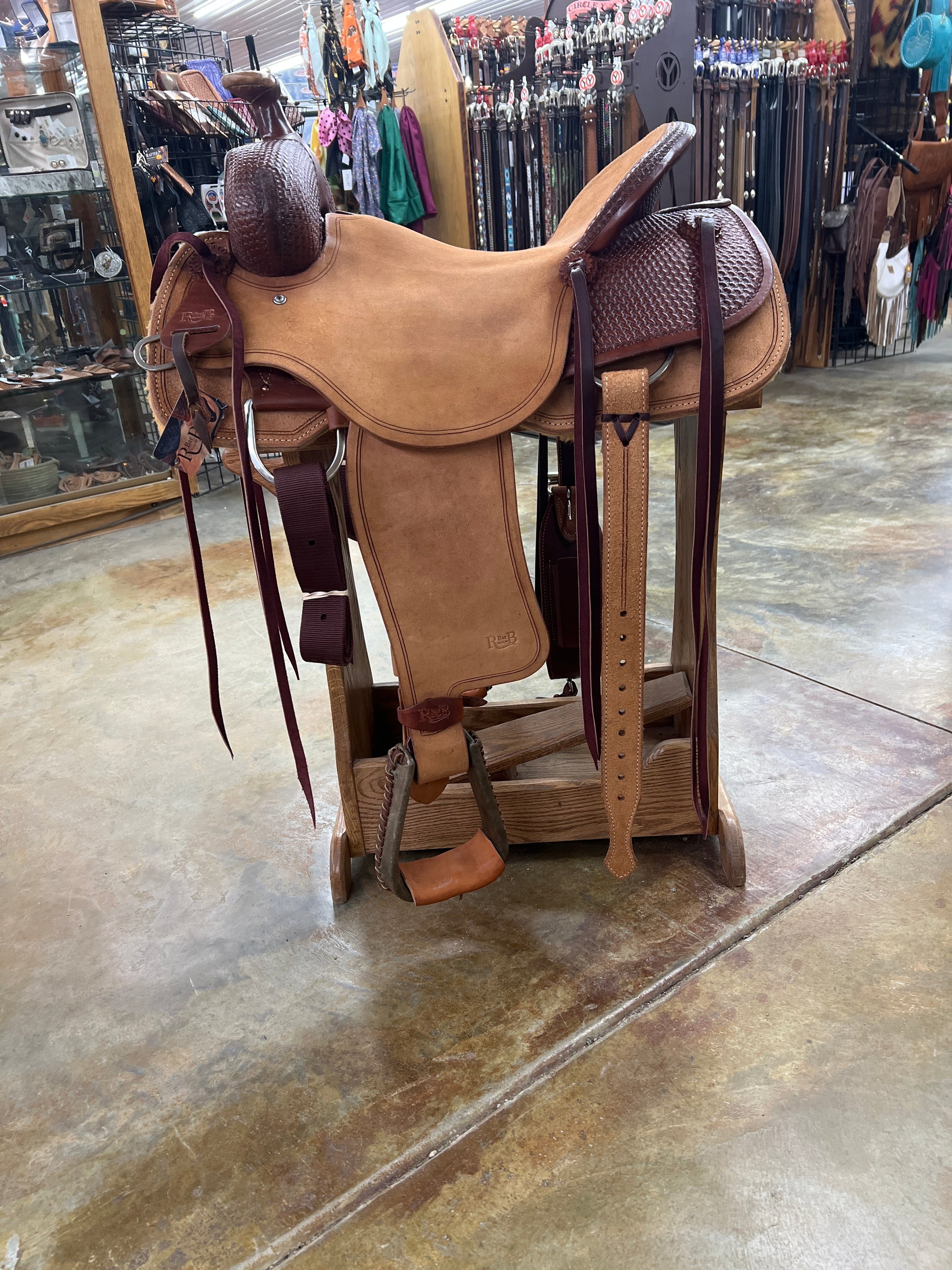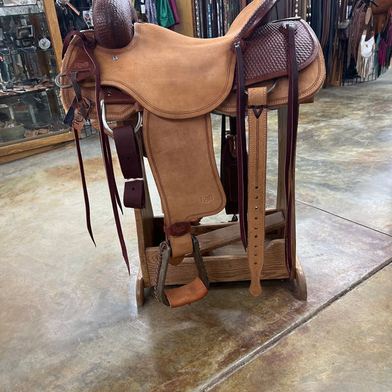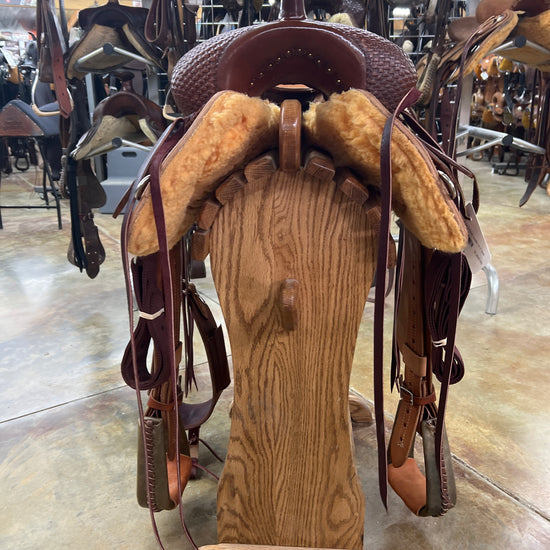 1/4 Tool Basket Stamp, Double Line Border, Hard Seat, Roughout Seat/Jockey/Fender/Skirt, 1" Cheyenne Roll, Saddle Strings, Rawhide Covered Stirrups