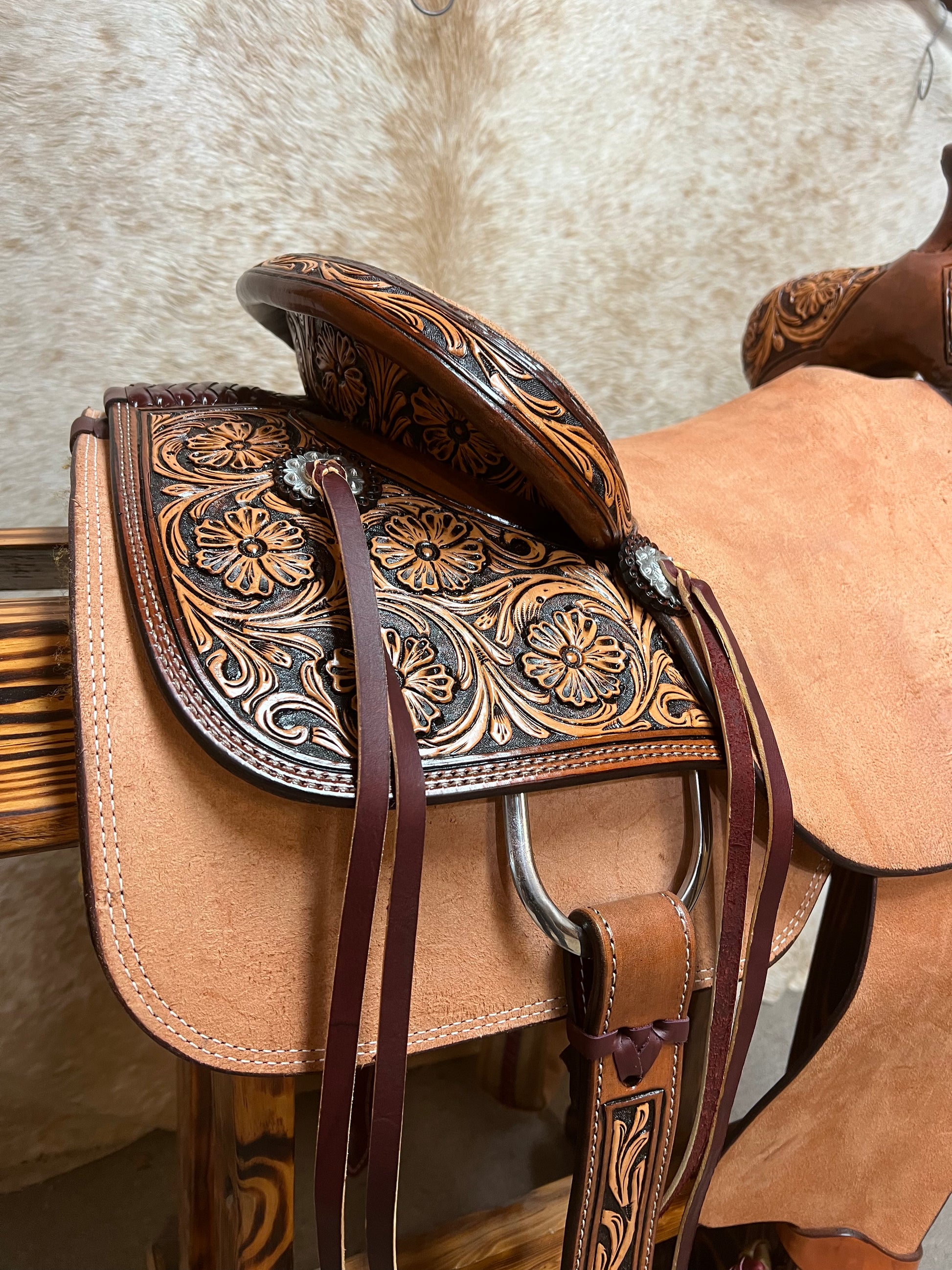 1/4 Tool Floral, Vintage, Hard Seat, Latigo Strings
