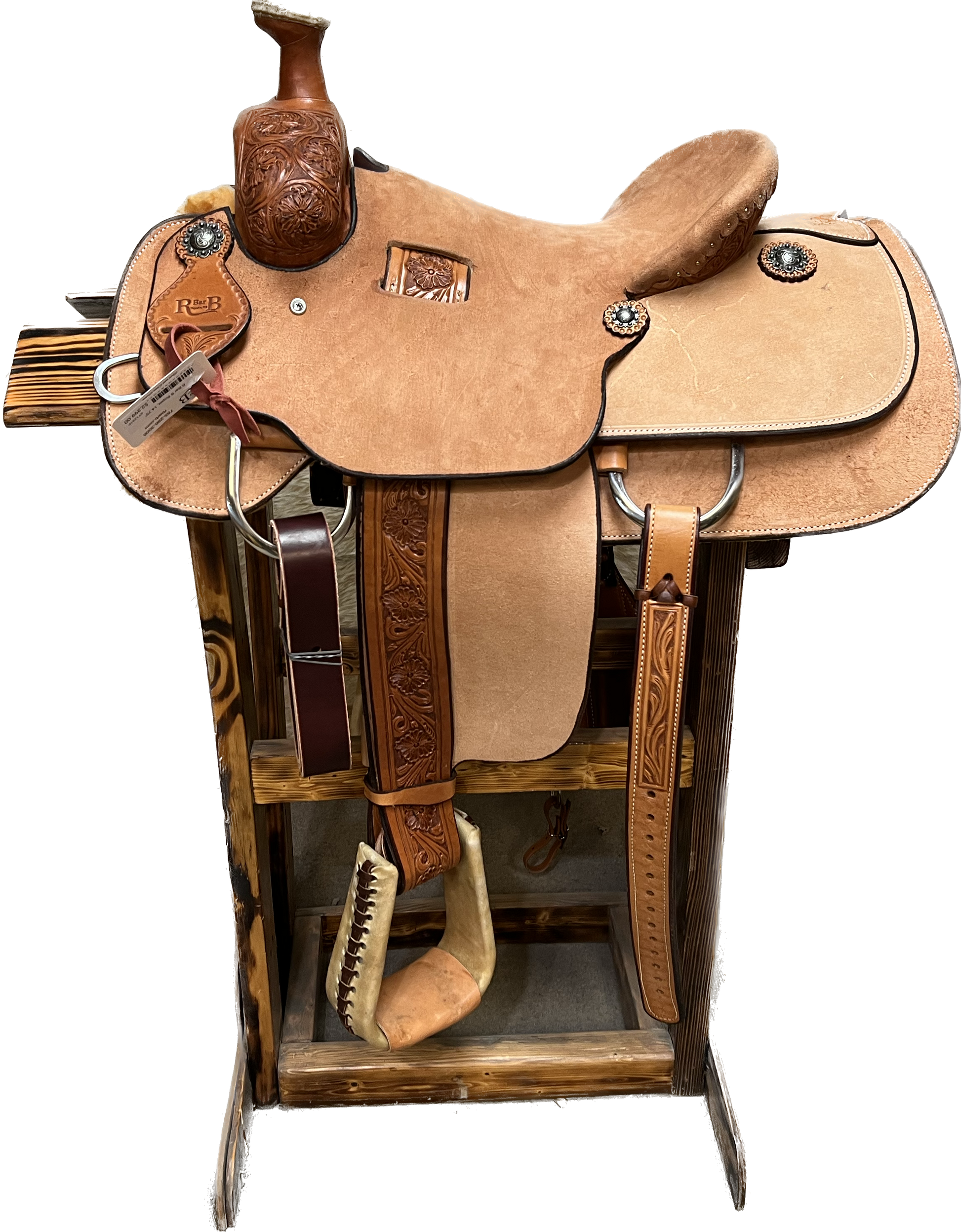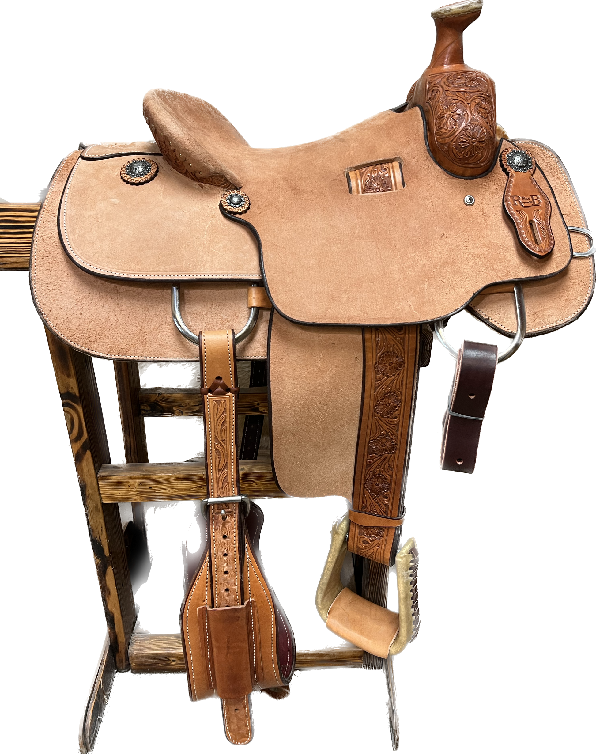 1/8 Tool Small Colorado, Medium Oil Finish, Hard Seat, Loop Seat, Exposed Stirrup Leathers, Rollover Scalloped Cantle