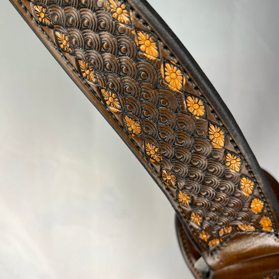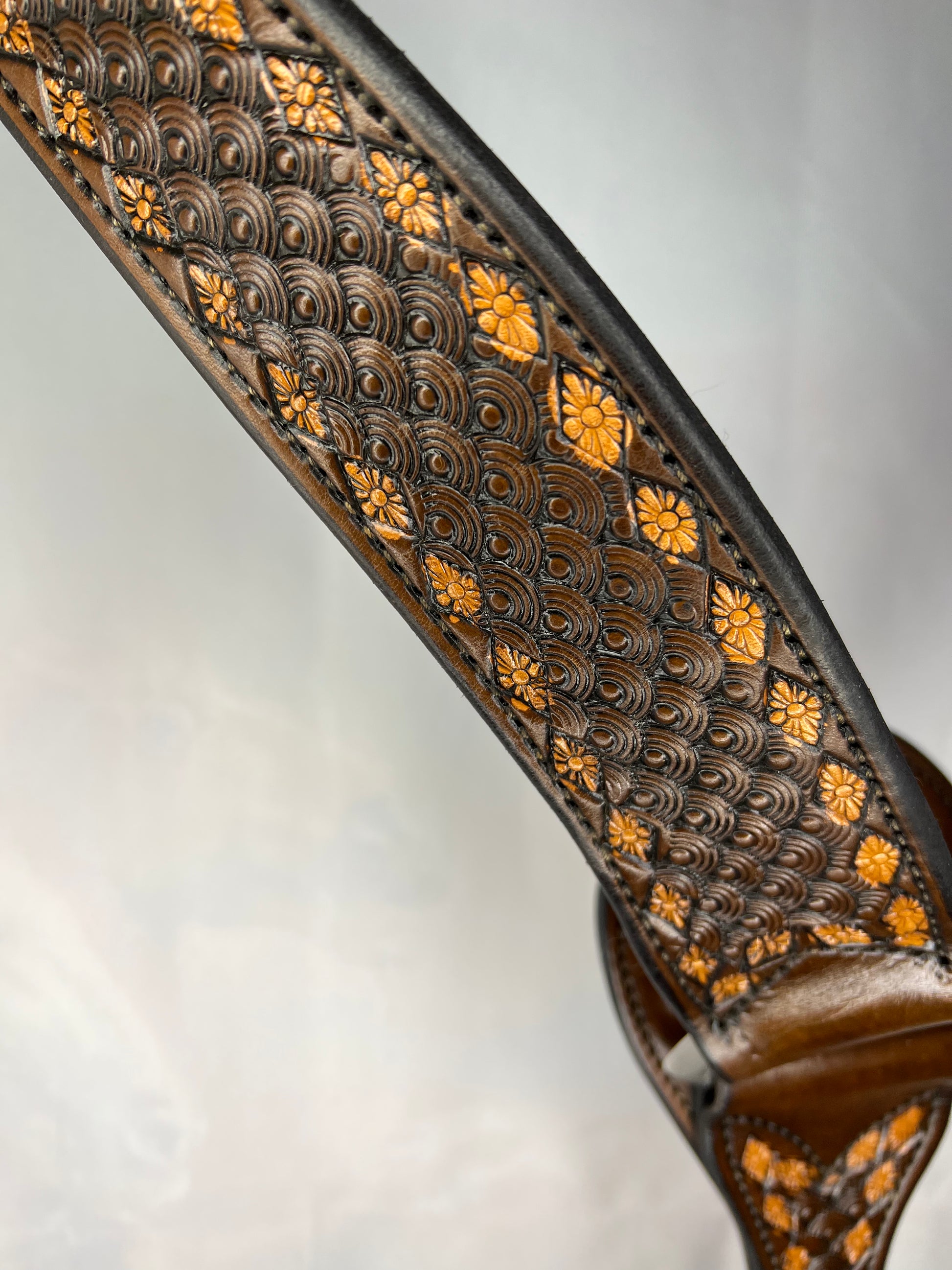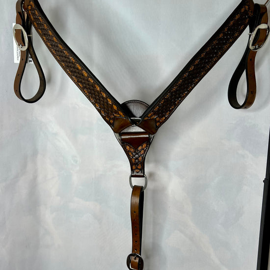 R Bar B-ST breast collar, wifi/border tooled, dark antique finish