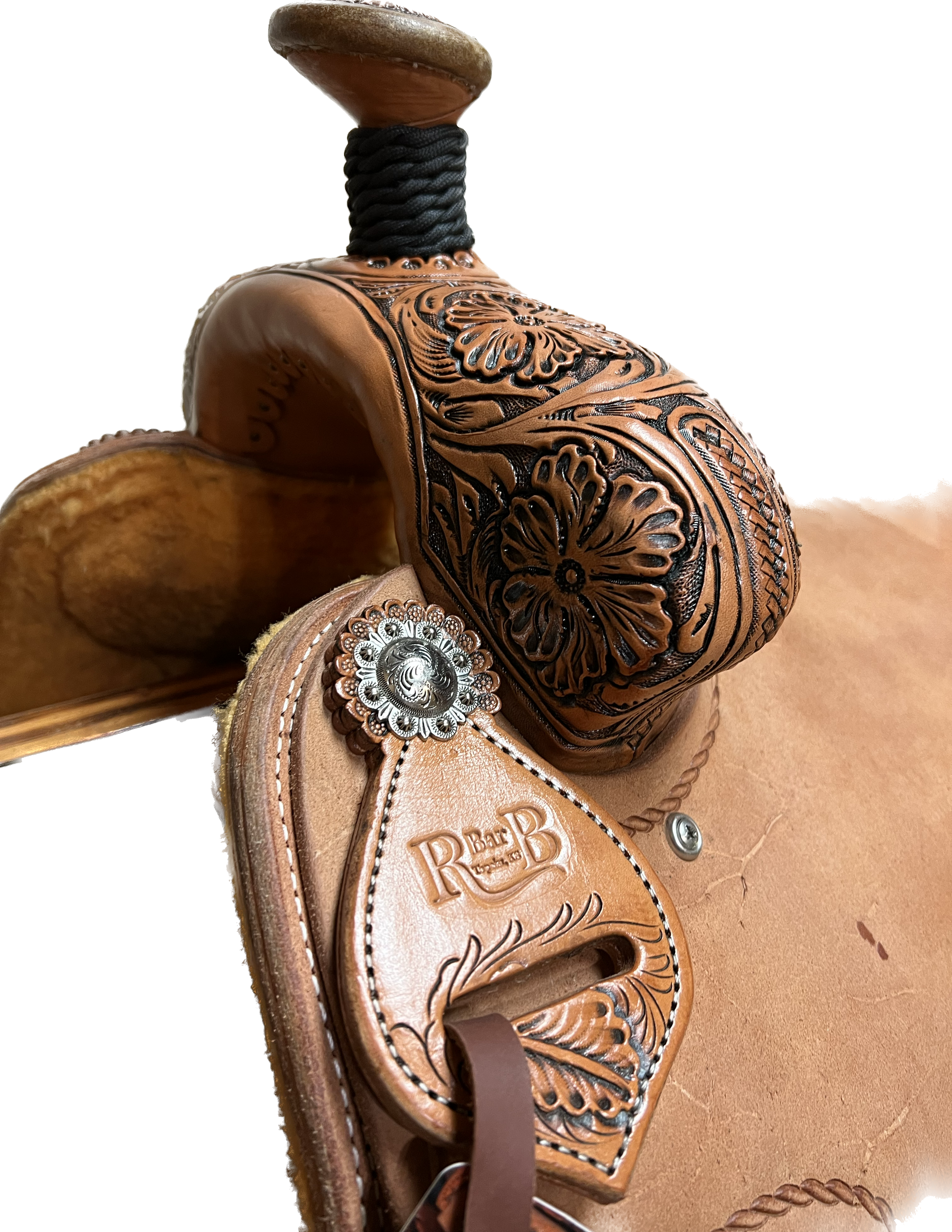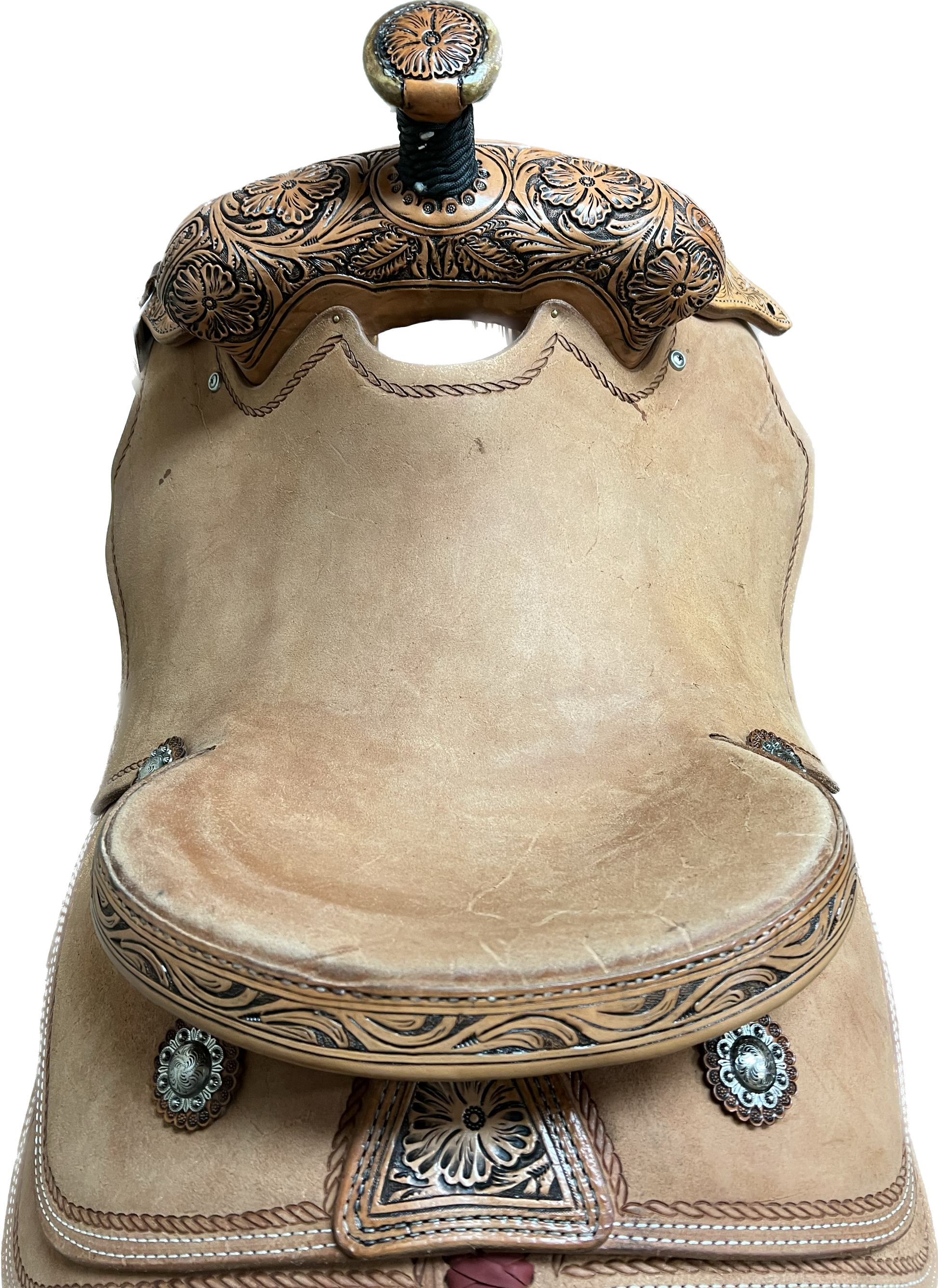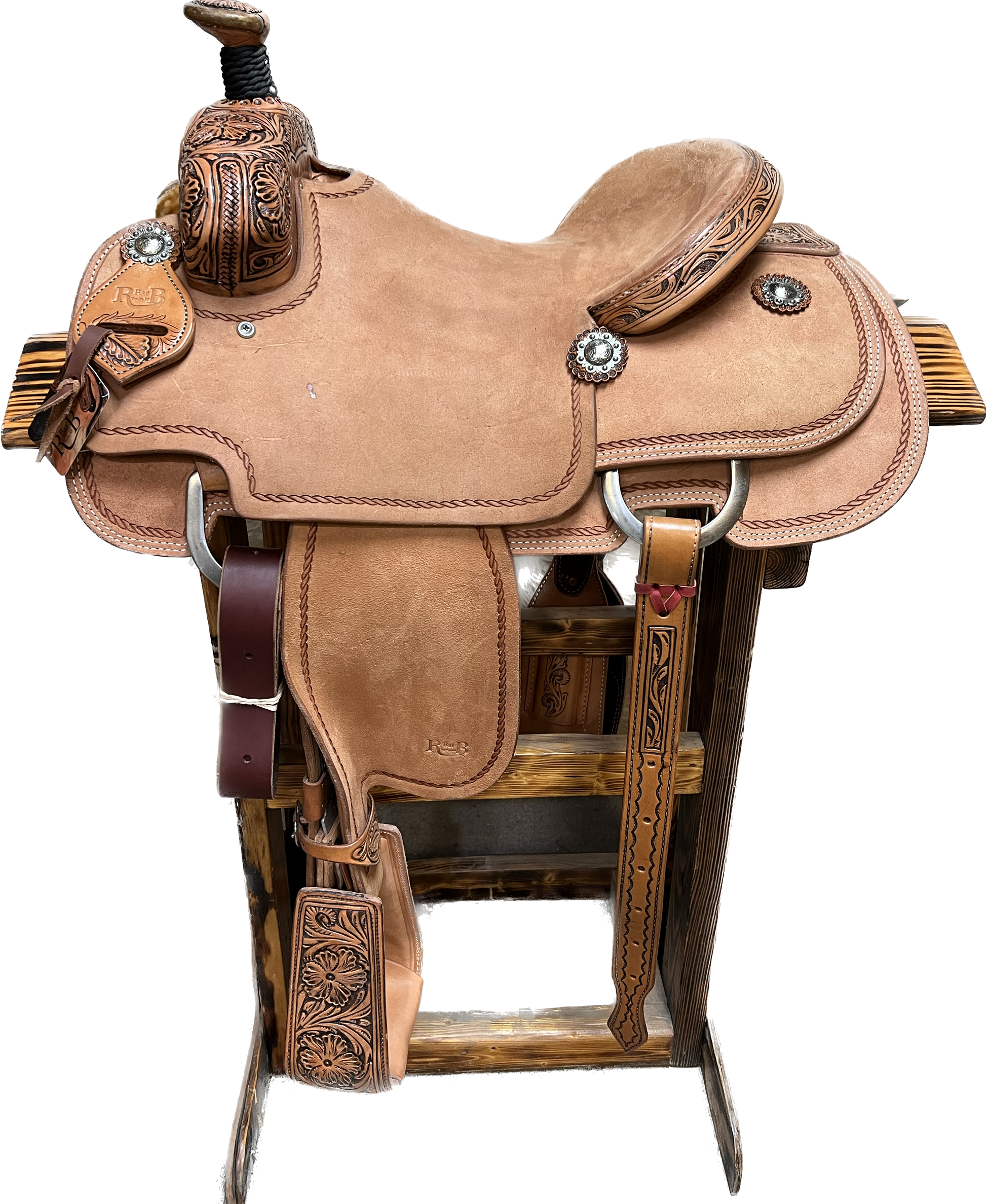 Double Leather, 1/8 Tool Floral, Hard Seat, Rope Border, Matching Tooled Stirrups, Real Wool