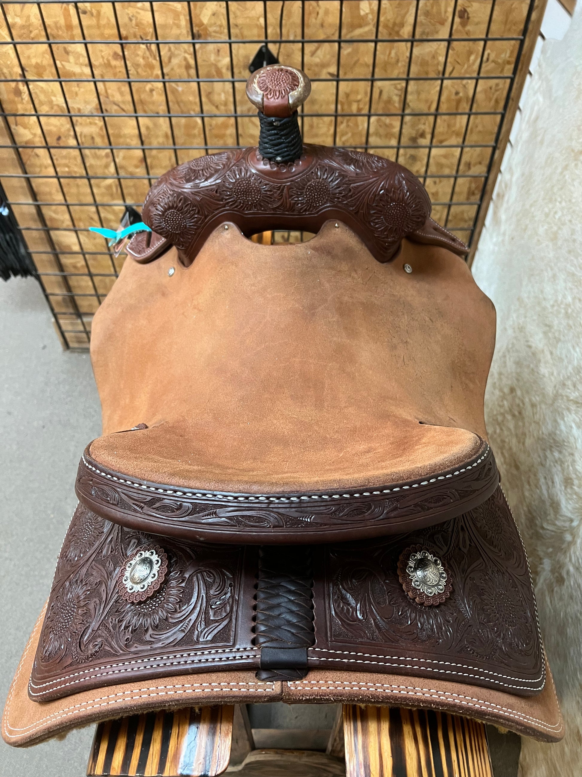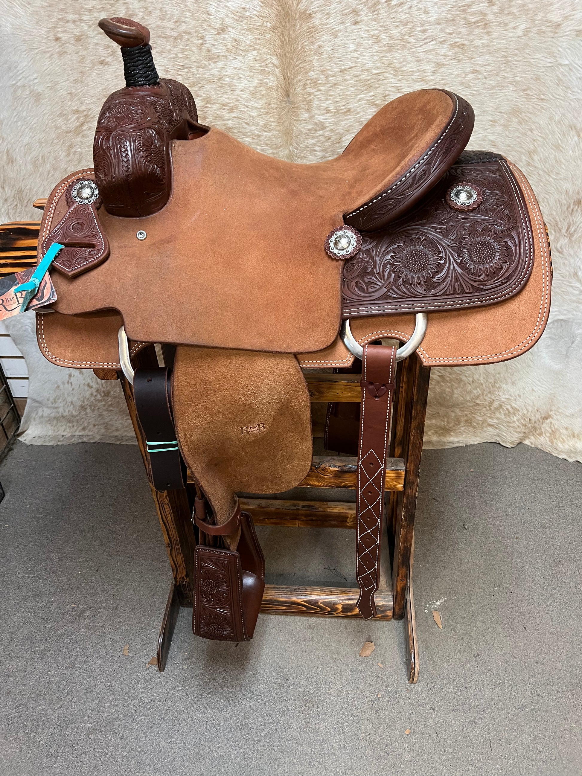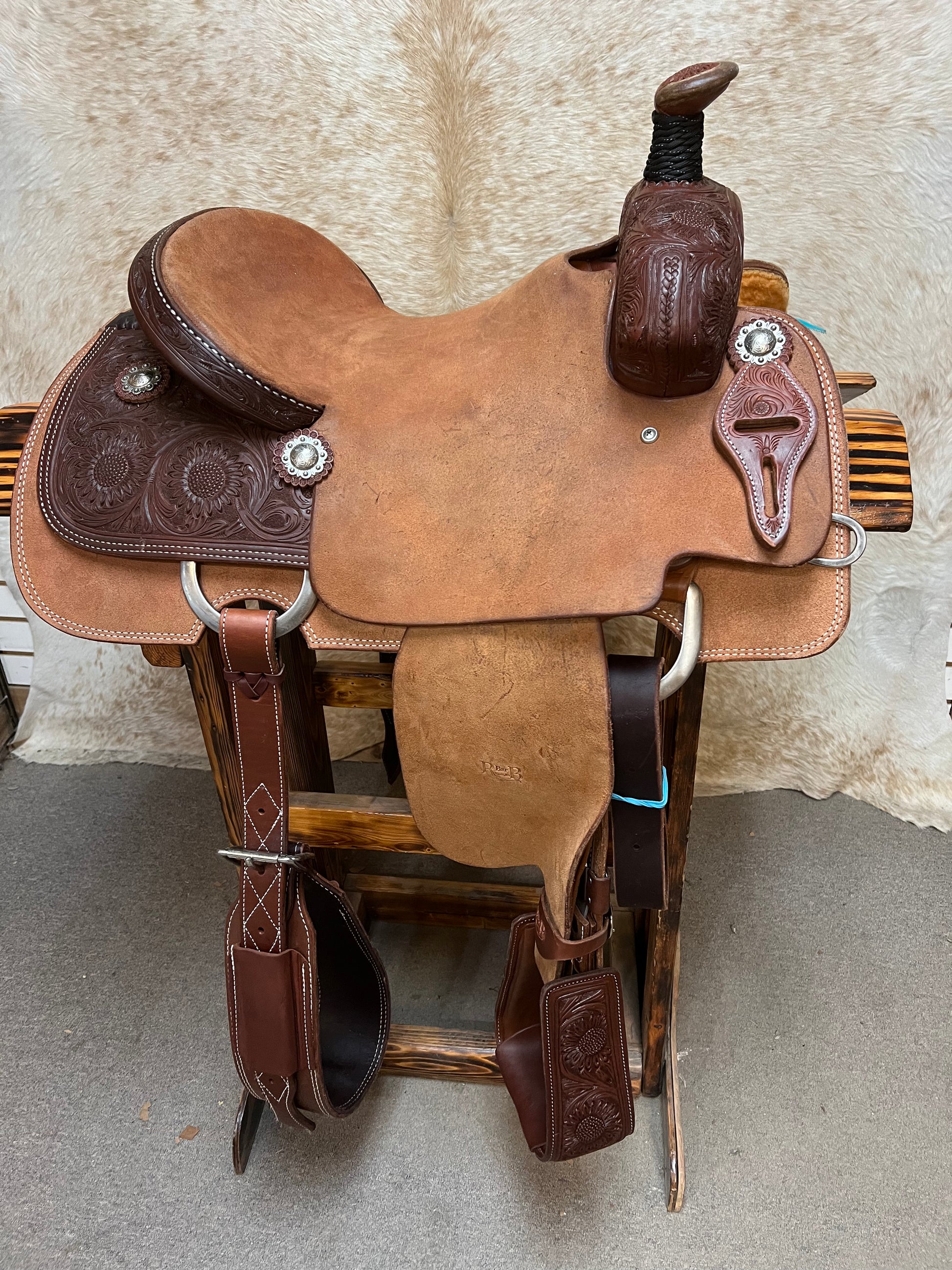 1/4 Tool Sunflower, Hard Seat, Roughout Seat/Jockey/Fender/Skirts, Matching Tooled Stirrups, Real Wool