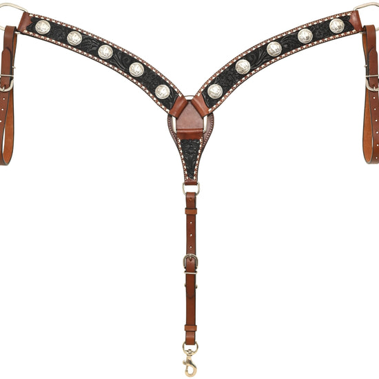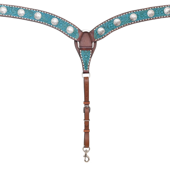 Rafter T Floral Tooled Breast Collar w/White Buckstitch & Buffalo Conchos
