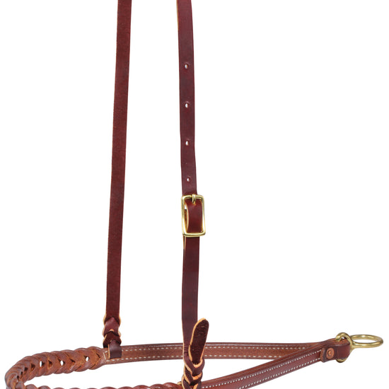 This good-looking noseband is specifically designed to encourage "rate" and proper headset for balance and body posture. Made of our premium oiled harness leather with hand-tied latigo hanger.
