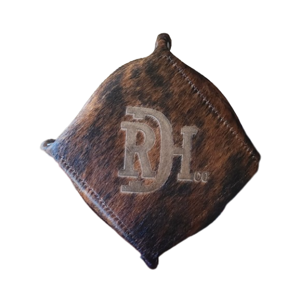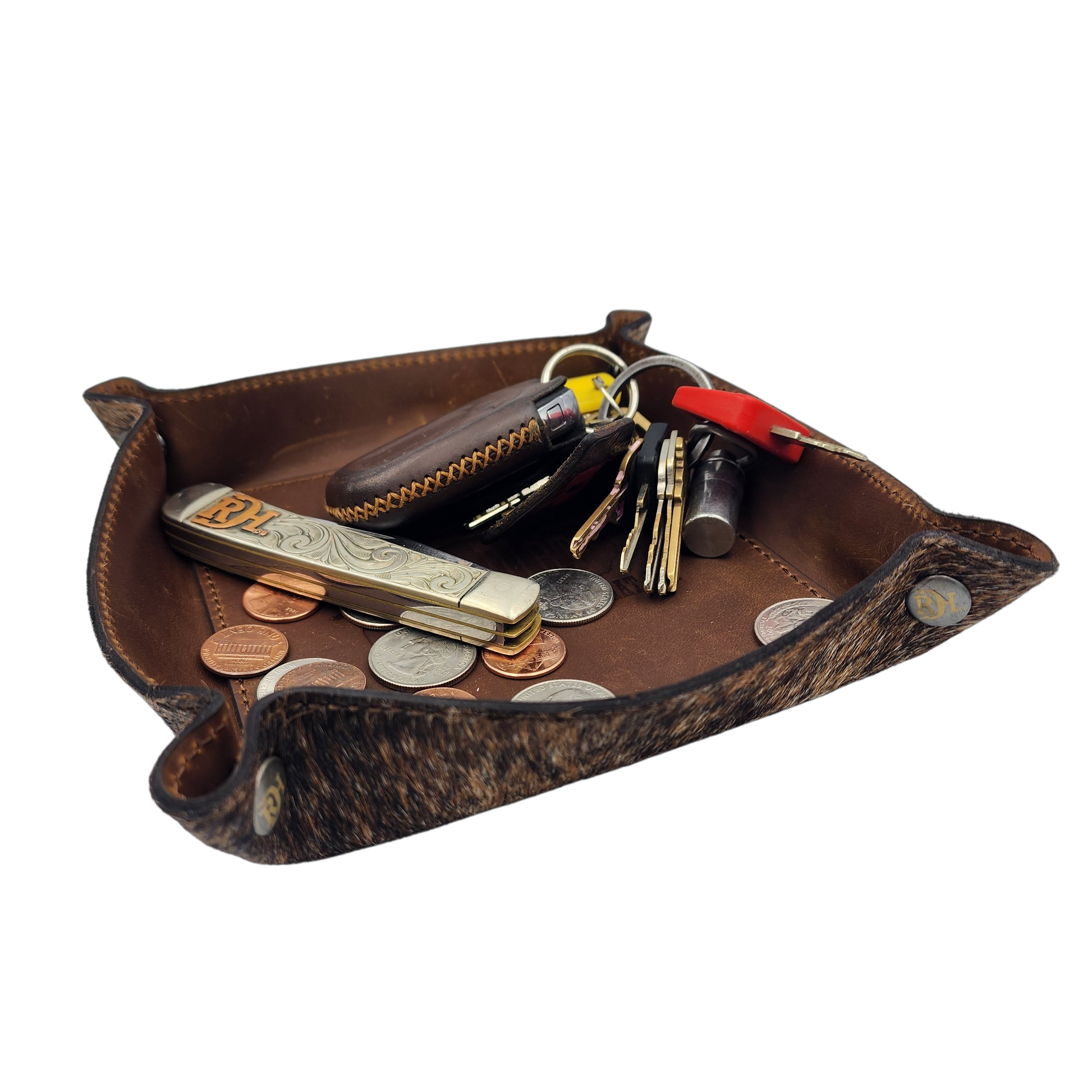 Keep your clutter down with our brindle and genuine leather “daddy caddy”!