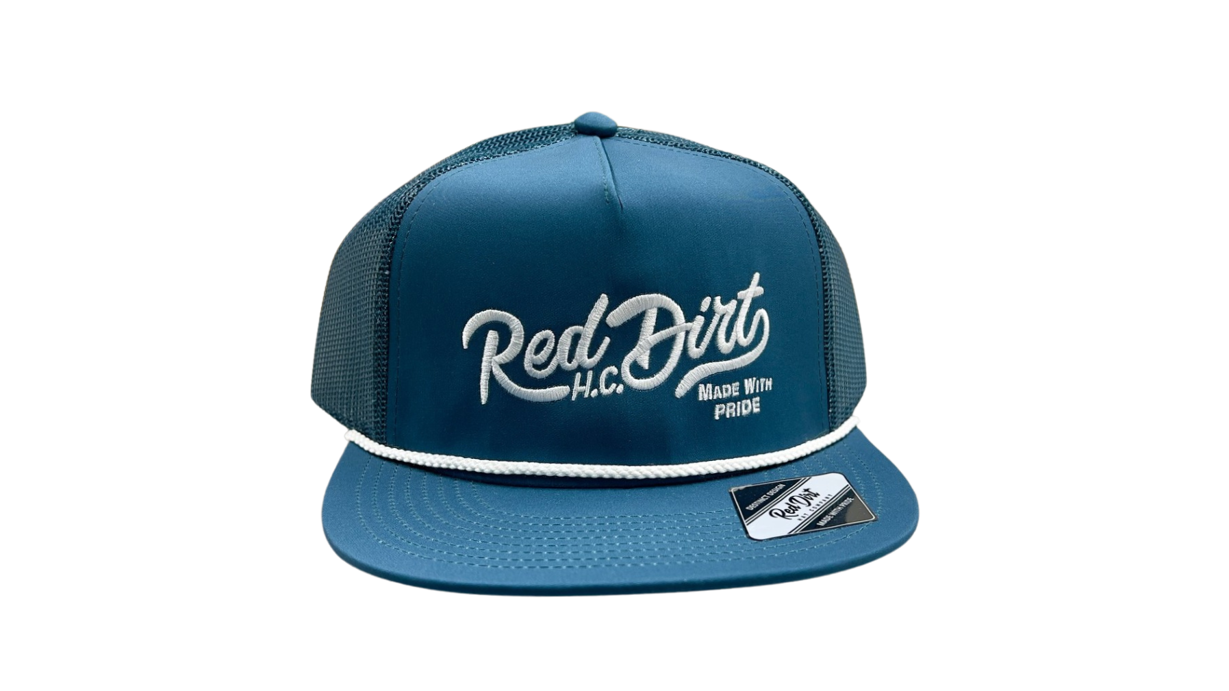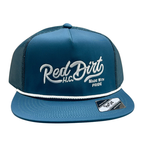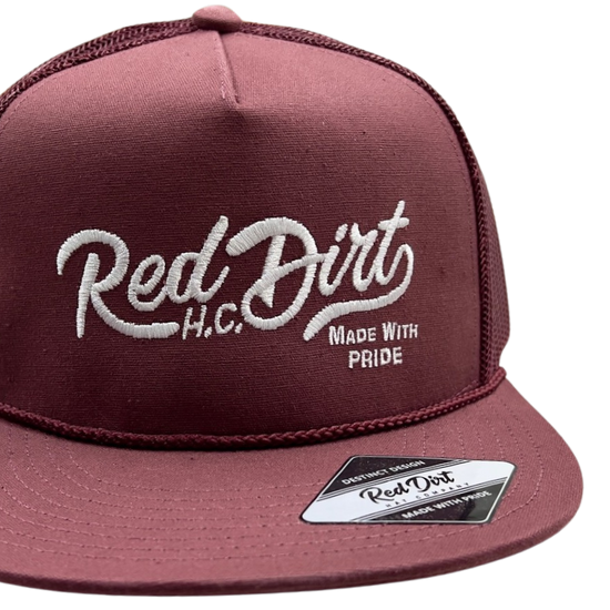 Step up your hat game with the stylish Red Dirt Hat Co.'s Over the Top Ball Cap. This 5-panel cap features our signature Red Dirt H.C. Made with Pride embroidery in white, adding a touch of uniqueness and pride to your look. The rope and flat bill complete the sleek design. Elevate your style today!