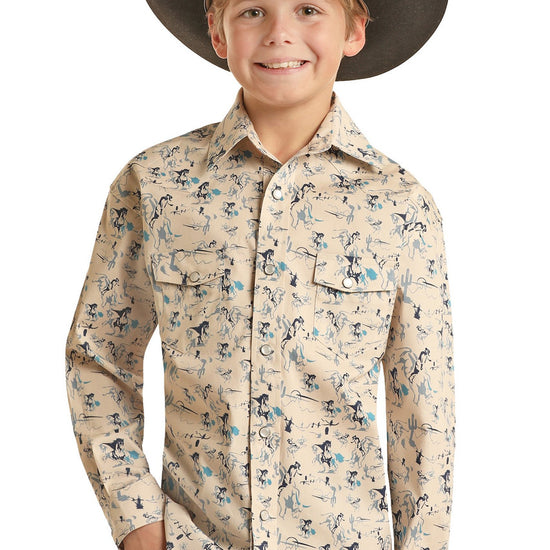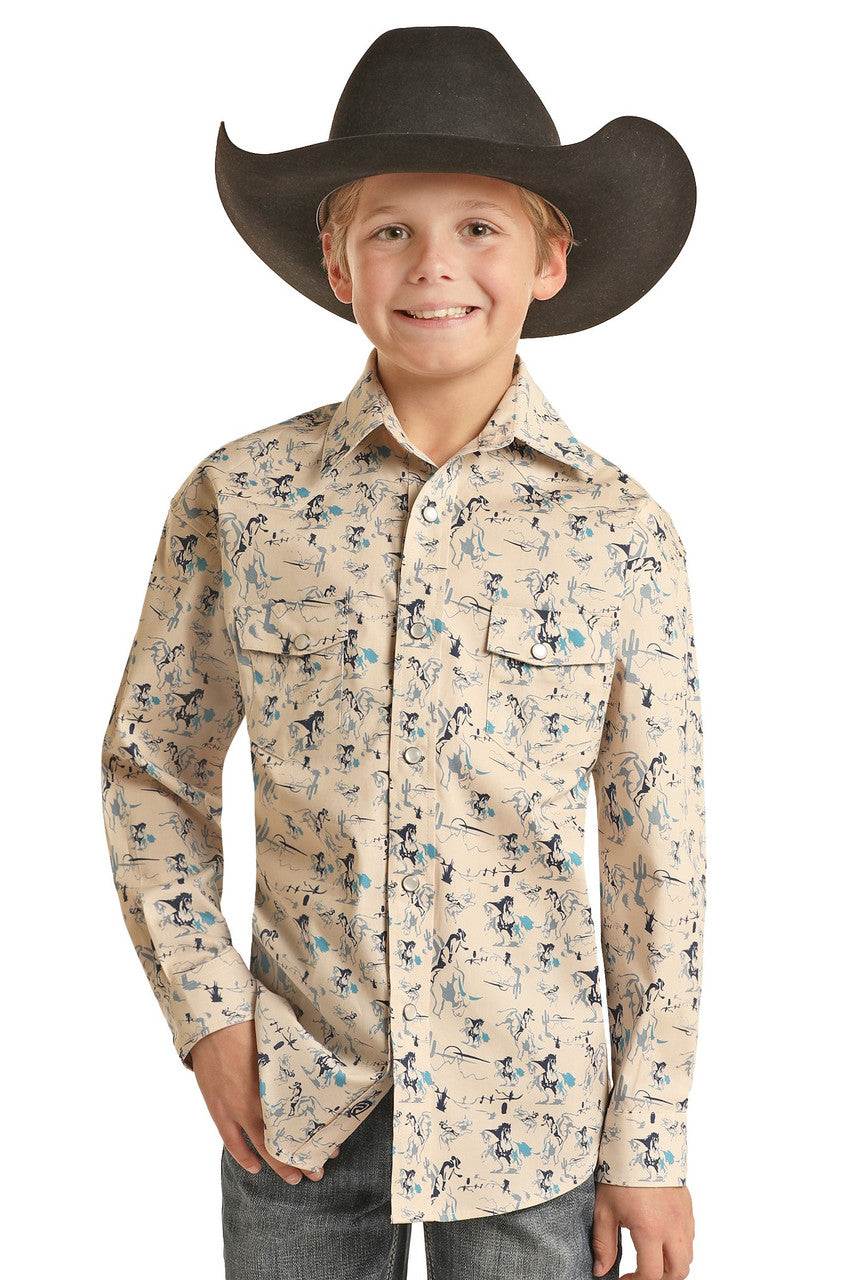 Rock & Roll Boy's Western Graphic Long Sleeve Snap Shirt