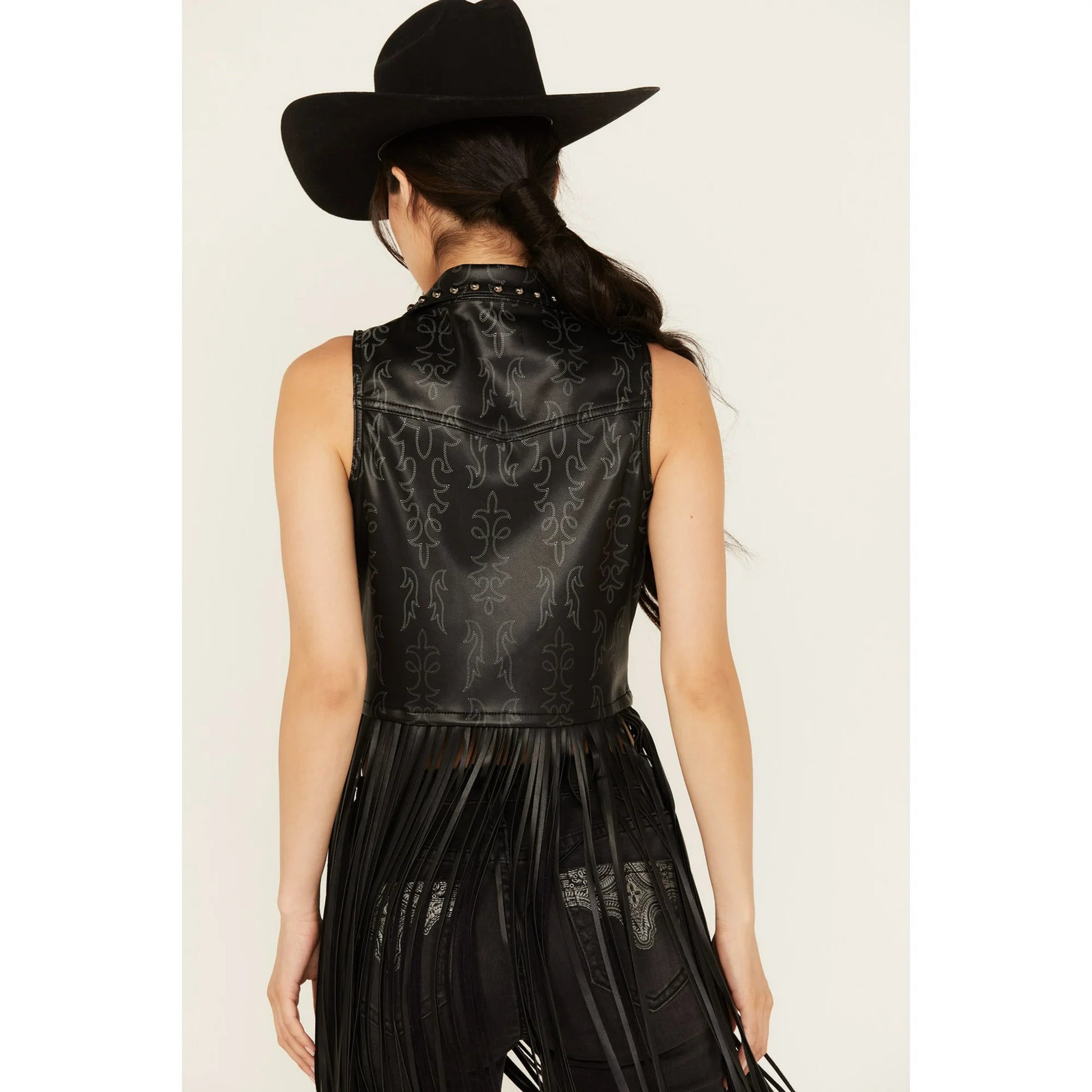 Rock & Roll Denim Women's And Embellished Long Fringe Vest