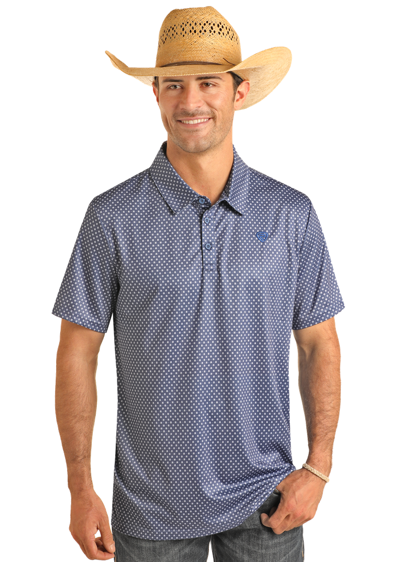 Rock & Roll Men's Blue Geometric Printed Polo Shirt