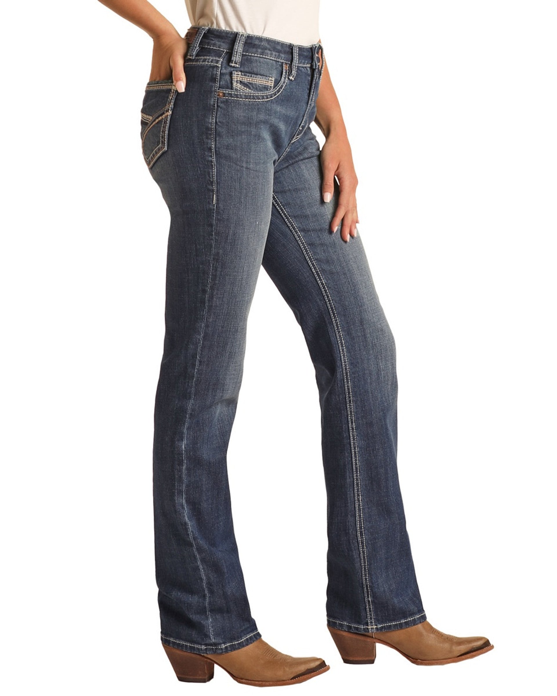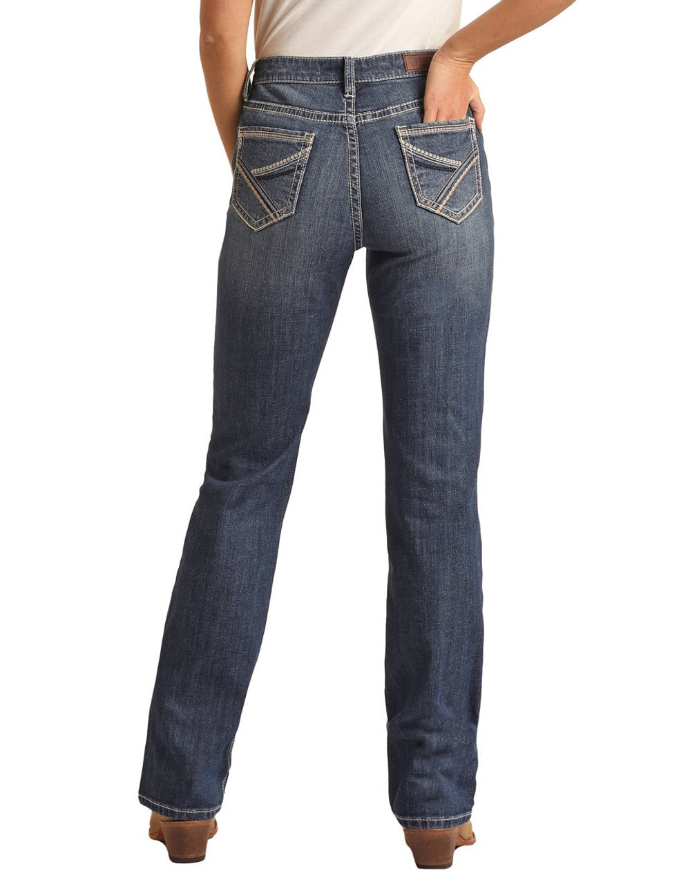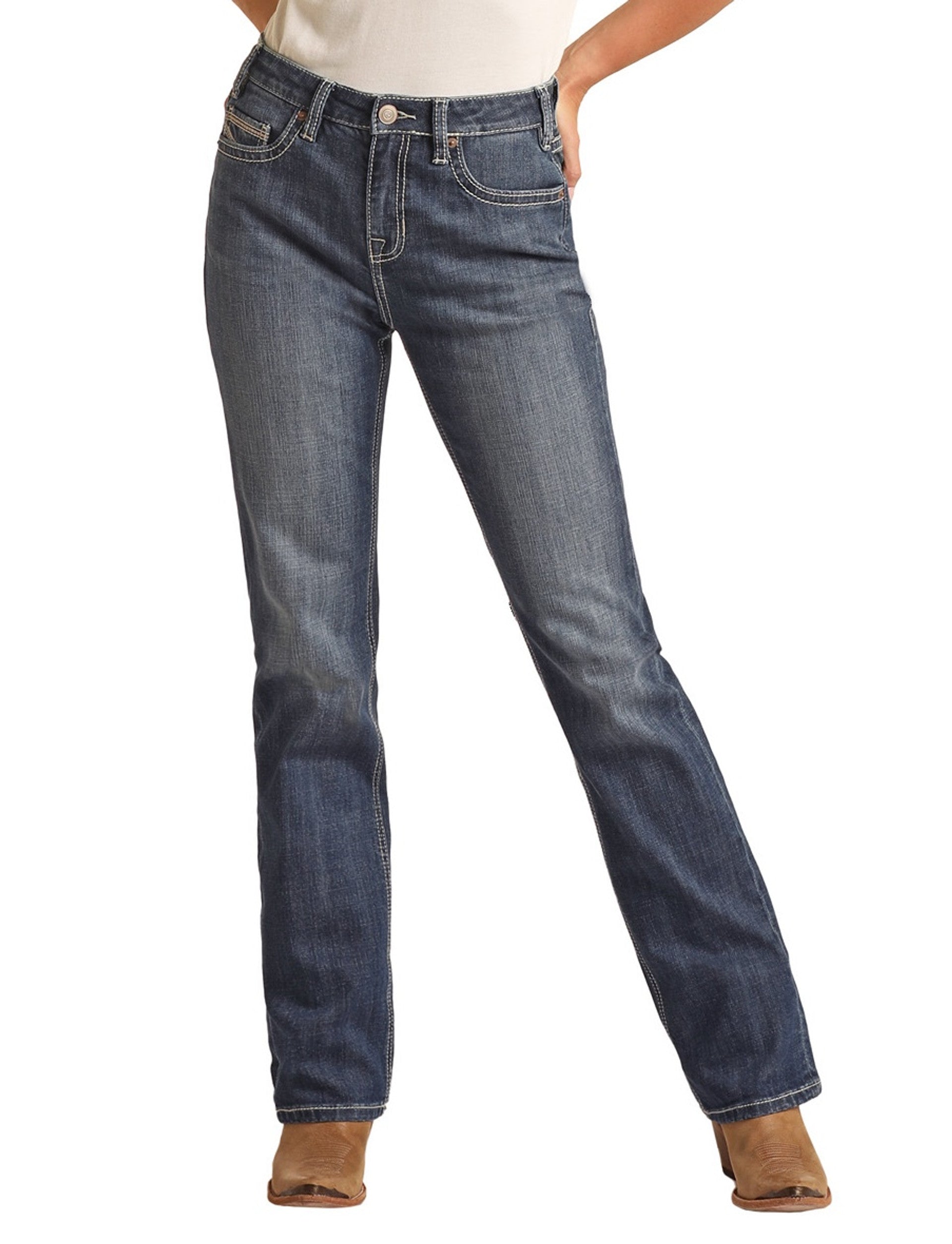 Rock & Roll Women's Mid-Rise Regular Fit Modest Bootcut Jeans