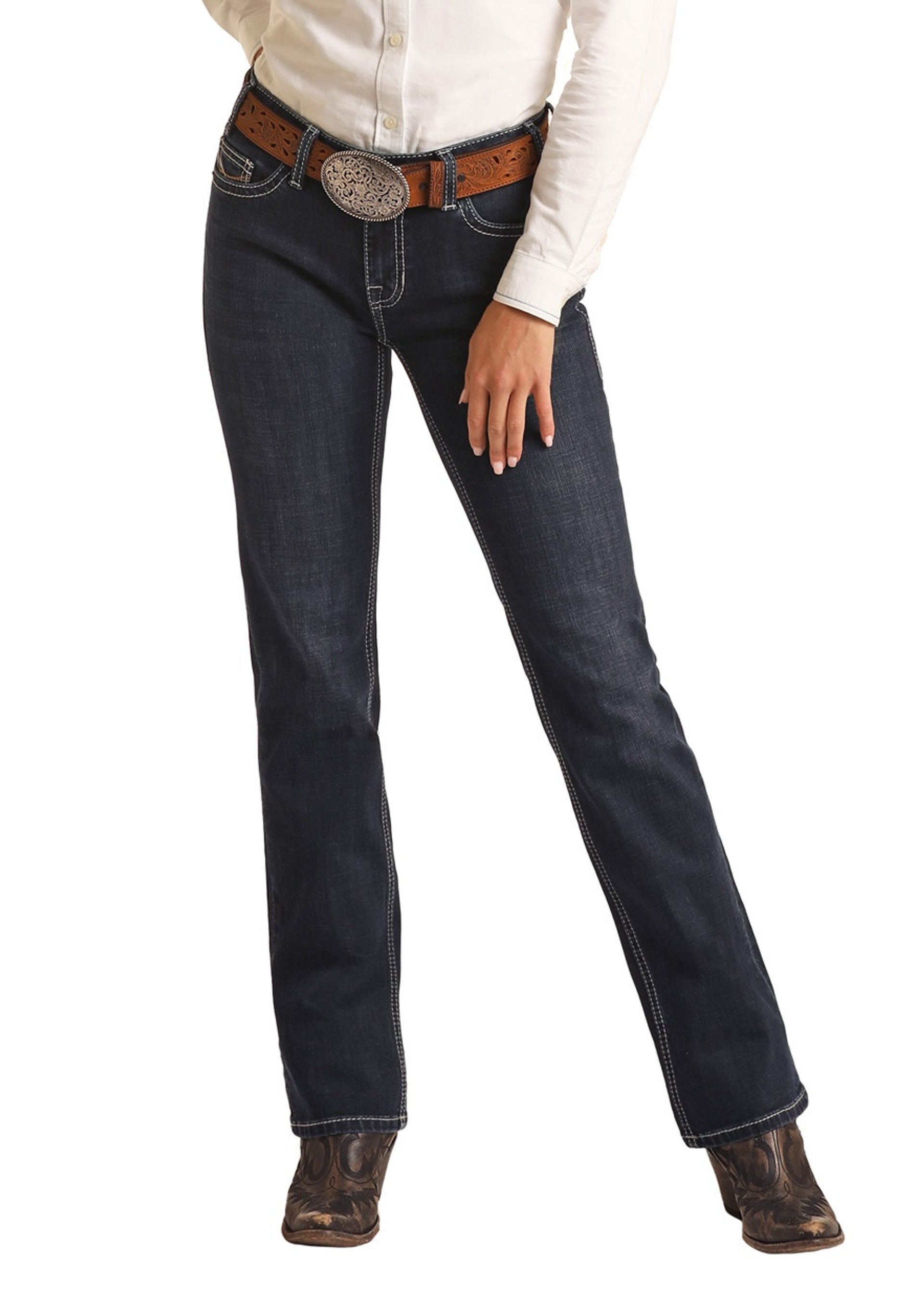 Rock & Roll Women's Mid Rise Regular Fit Modest Bootcut Jeans